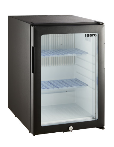 Material: (Hölje) pulverlackerat stål, svart; (Insida) plast, vit; (Hyllplan) plast, ljusblå