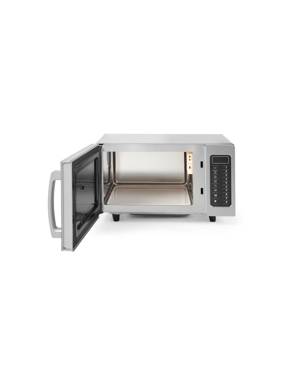 Den programmerbara mikrovågsugnen HENDI är en modern apparat designad för snabb uppvärmning och upptining av rätter. Perfekt för små snabbmatsrestauranger, barer, bensinstationer, cafeterior eller kök i kontorsbyggnader, hotell eller pensionat.