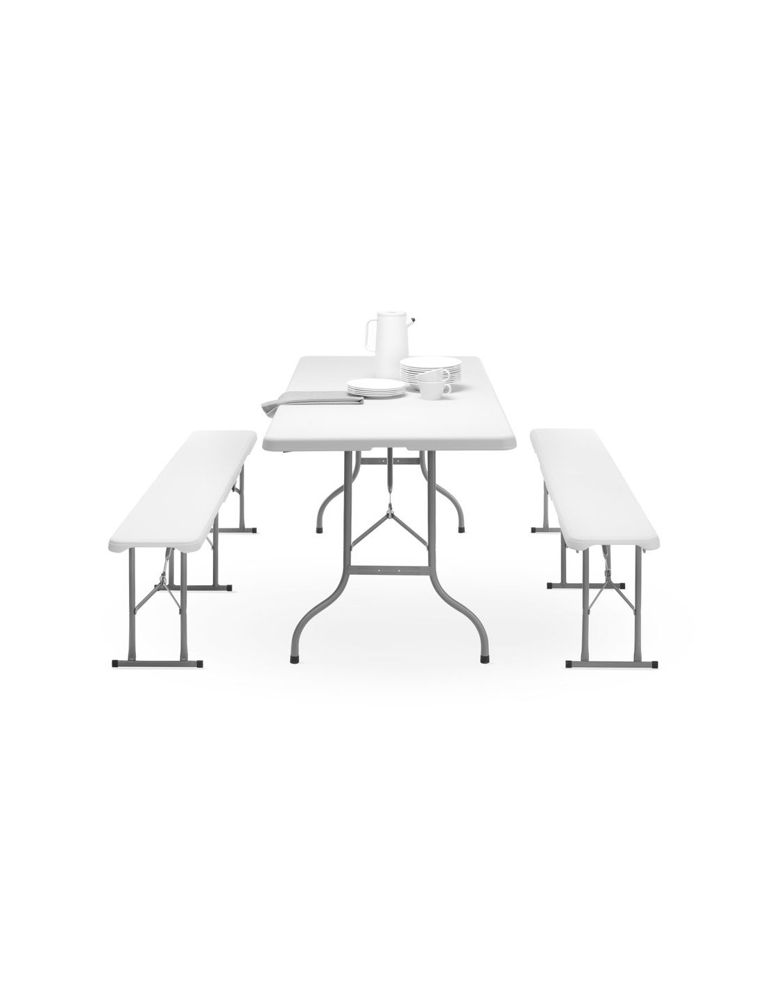 Multifunktionella hopfällbara möbler för inomhus- och utomhusbruk. Stomme tillverkad av pulverlackerade metallprofiler. Enkel transport och förvaring. Lättrengjorda och fläckbeständiga ytor.