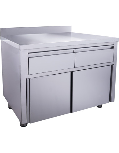 Skjutdörrsgarderob med 2 lådor och uppåtstående stativ, 1200x700 mm