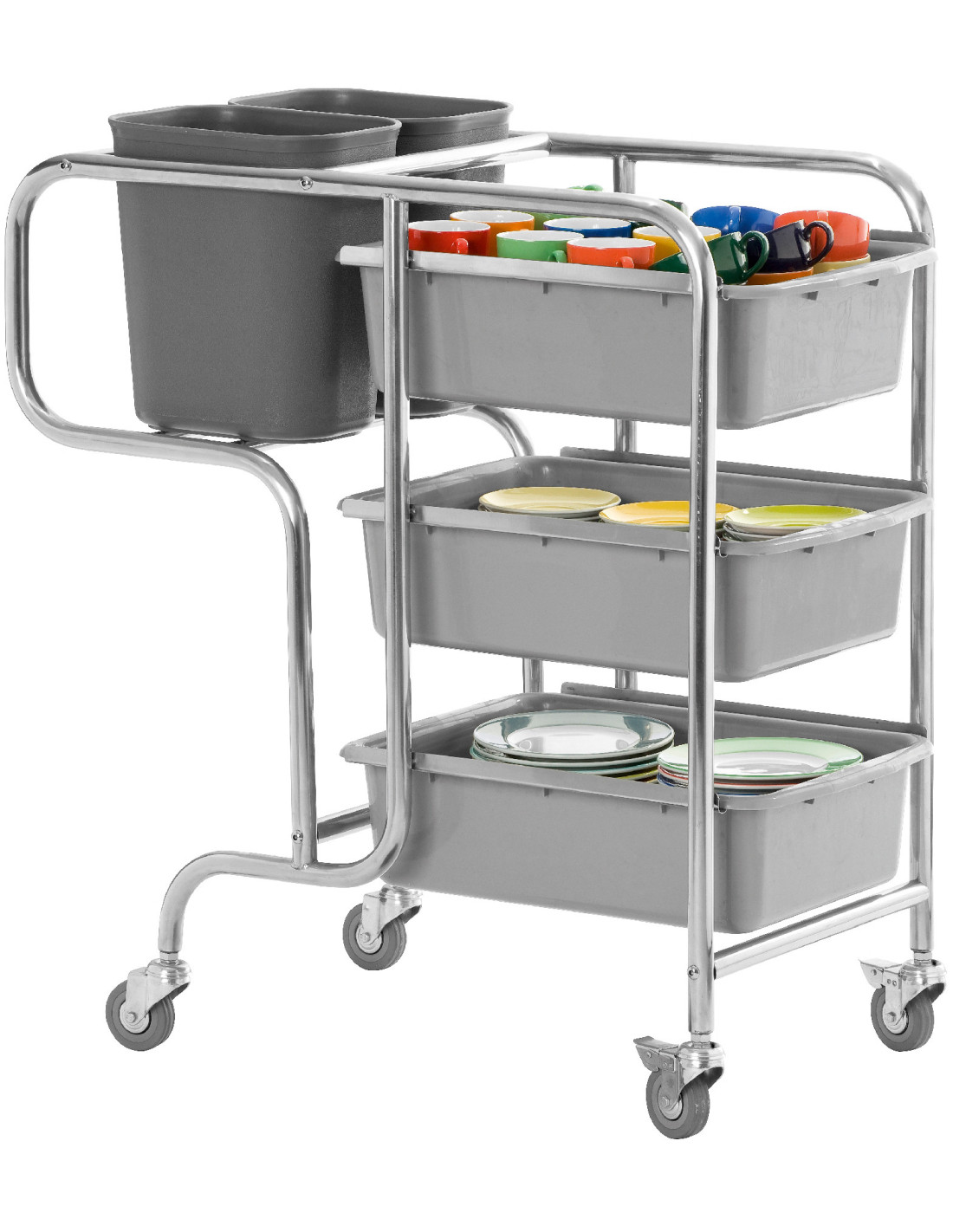• 3 behållare för tallrikar, koppar, glas etc. och 2 behållare för bestick och avfall etc. ingår