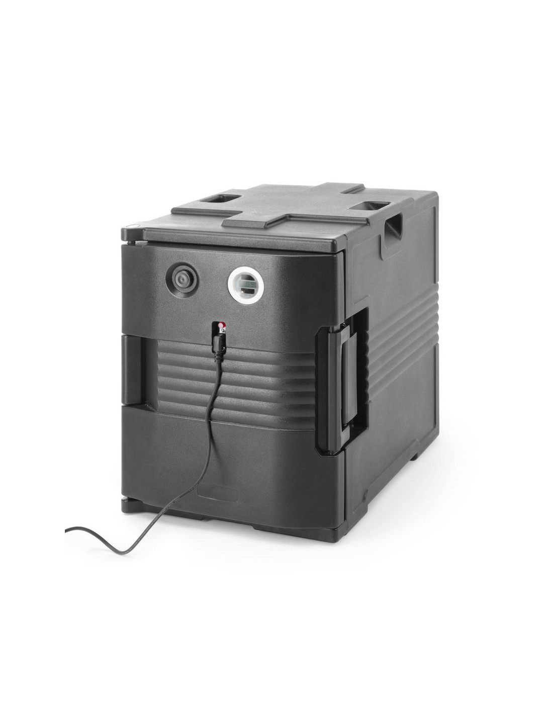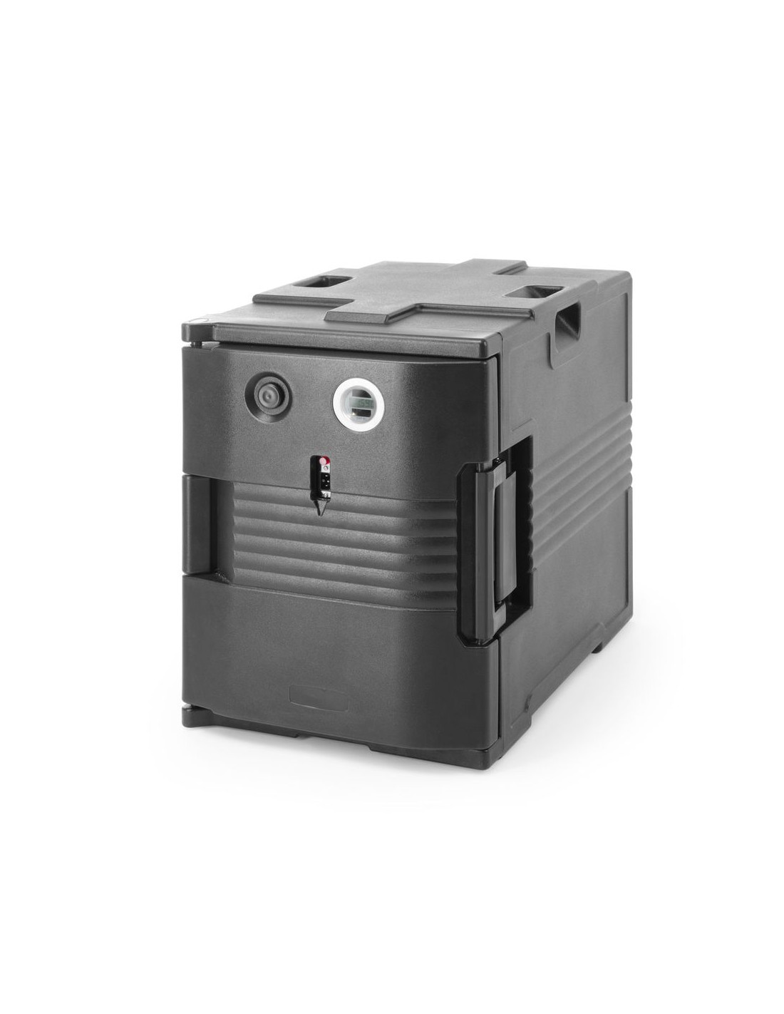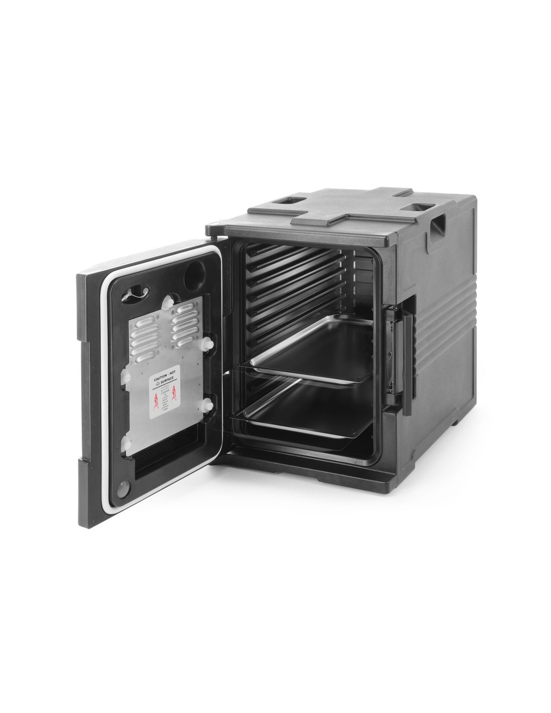 Dubbla slagtåliga isoleringsväggar i HDPE. Möjlighet att ställa in kammarens värmetemperatur efter anslutning till strömförsörjningen. Håller maten vid säker serveringstemperatur i upp till 4 timmar efter att sladden dragits ur. 2 stora ergonomiska handtag. Stor och lättläst LED-display som visar temperaturen i kammaren. Bibehåller både hög och låg innehållstemperatur. Stansade skenor i kammarhöljet. Lämplig för 1/1 GN-behållare: – GN 1/1 (H) 20 mm: 12 st. – GN 1/1 (H) 65 mm: 6 st. – GN 1/1 (H) 100 mm: 4 st. – GN 1/1 (H) 150 mm: 3 st. – GN 1/1 (H) 200 mm: 2 st. – GN 1/2 (H) 150 mm: 6 st. Maxtemperatur: 68°C. Vattentålighetsklass: IPX3.