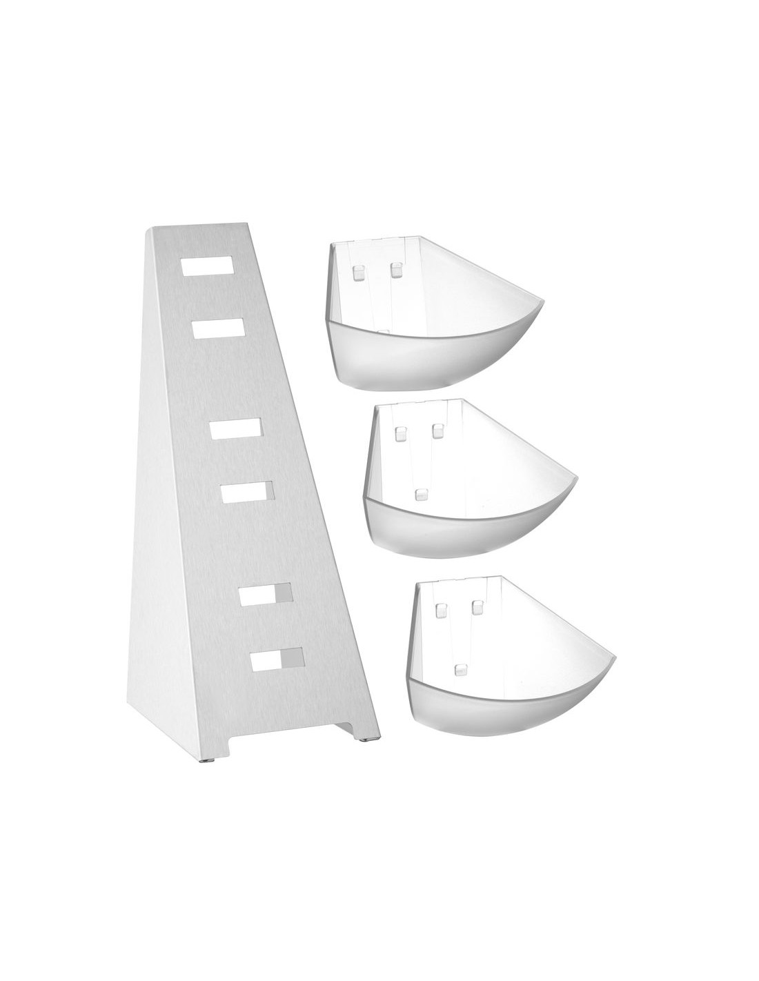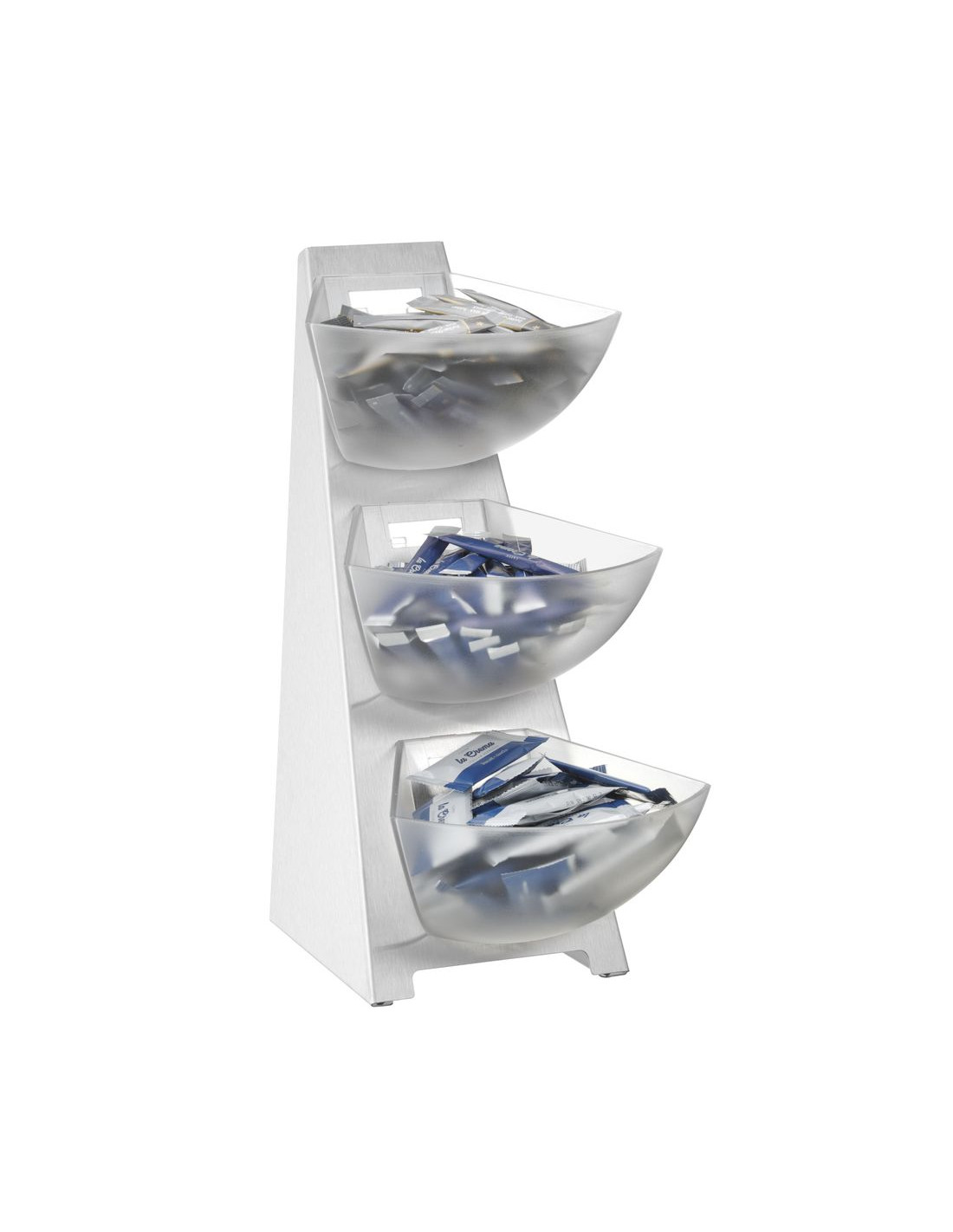 HENDI Multirack har 3 separata behållare för att visa upp till exempel förpackade portioner av kaffegrädde, socker, sylt eller smör, vilket gör den till det perfekta tillskottet till varje kaffe- och frukostbuffé.