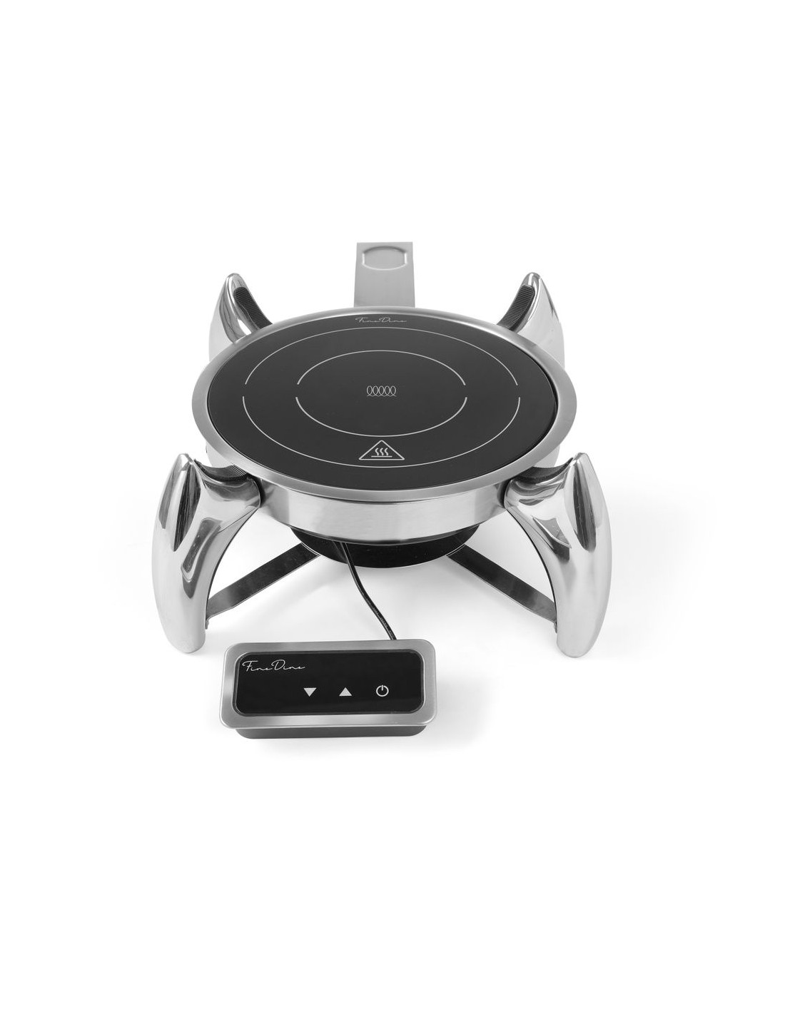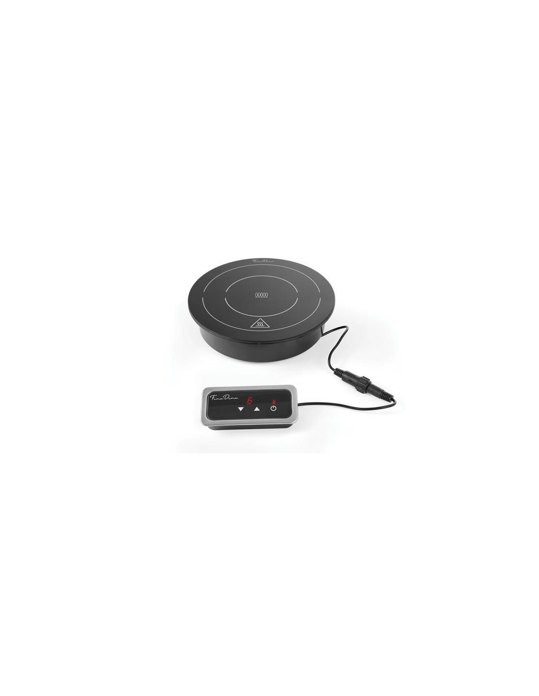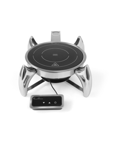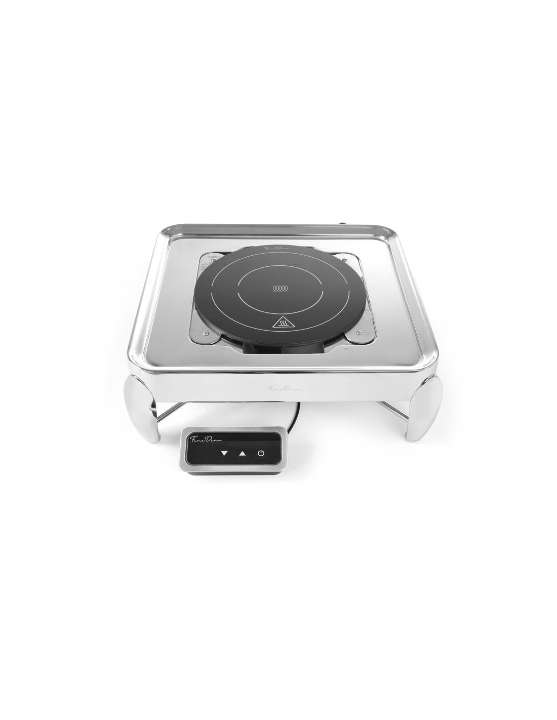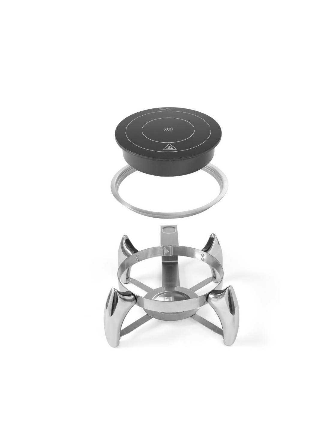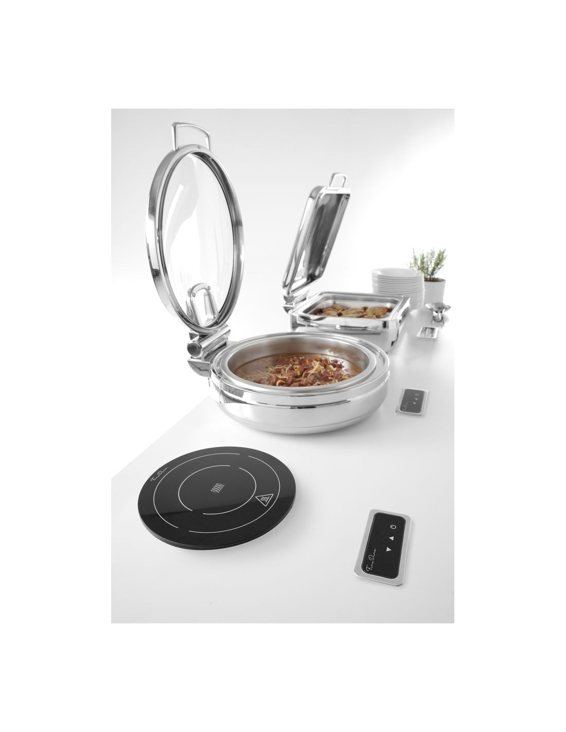 Svart kristallglasöverdel och plasthölje. Effektreglering justerbar i 10 steg, utrustad med elektroniskt överhettningsskydd. Kontrollpanel med LED-display och touchkontroll, kan monteras försänkt. Kan användas som värmeelement för varmhållningsdiskar med specialadapter. Även lämplig för inbyggnad med den separat tillgängliga ringen (239186) som tillval.