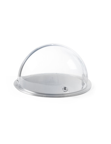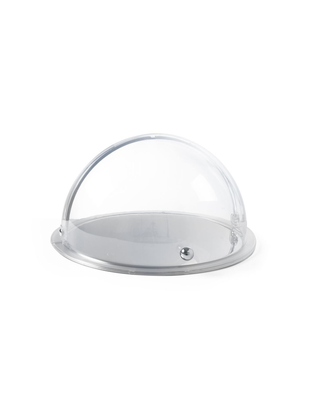 Transparent lock av SAN, kan öppnas på ena sidan upp till 90°. Med kromknapp. Lämplig för rund display med rulltäcke, finns även i detta set (kod: 424001).
