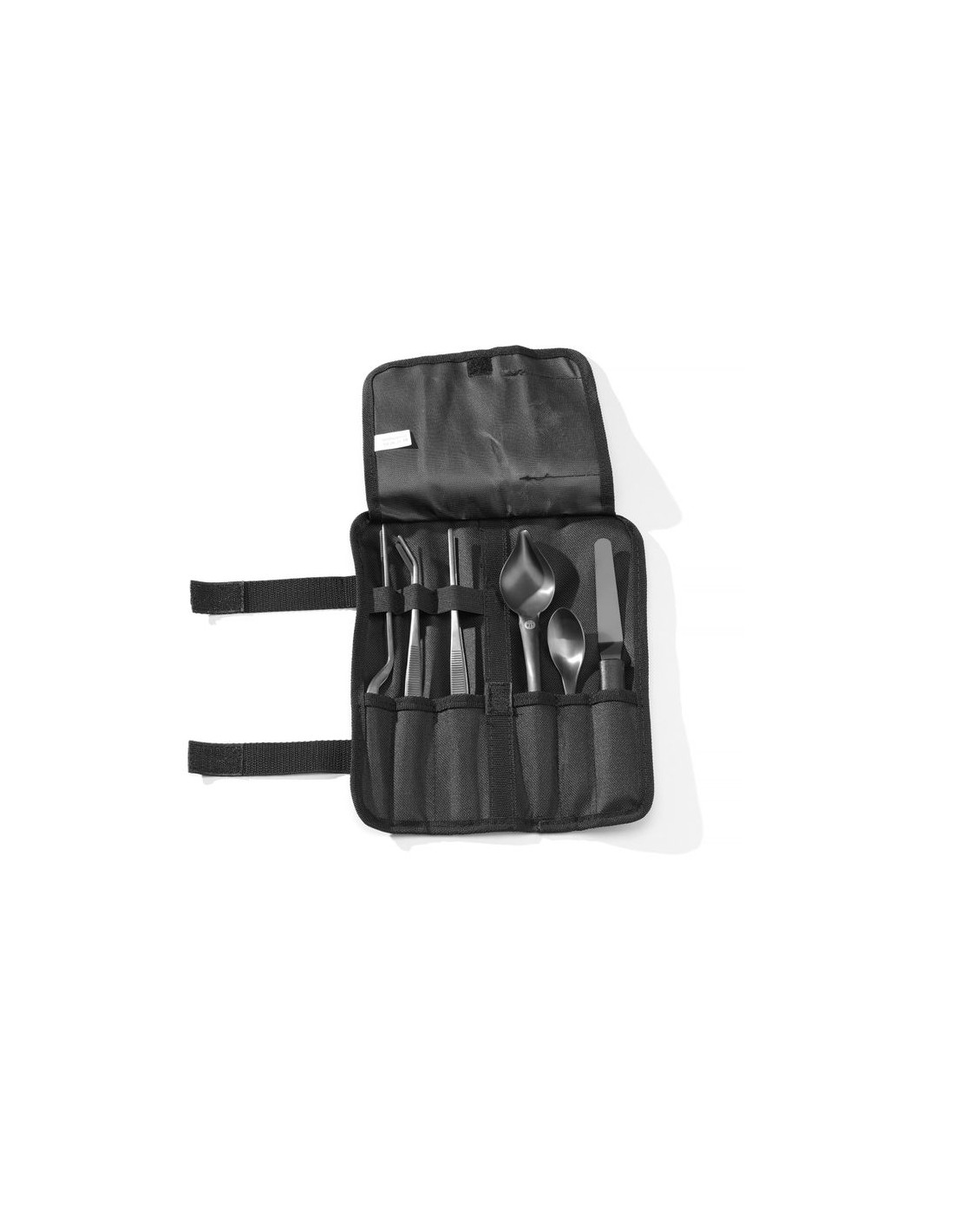 - Etui med 6 verktyg: 3 pincetter, 2 skedar, 1 spatel.