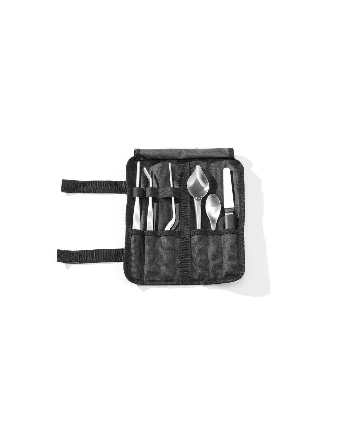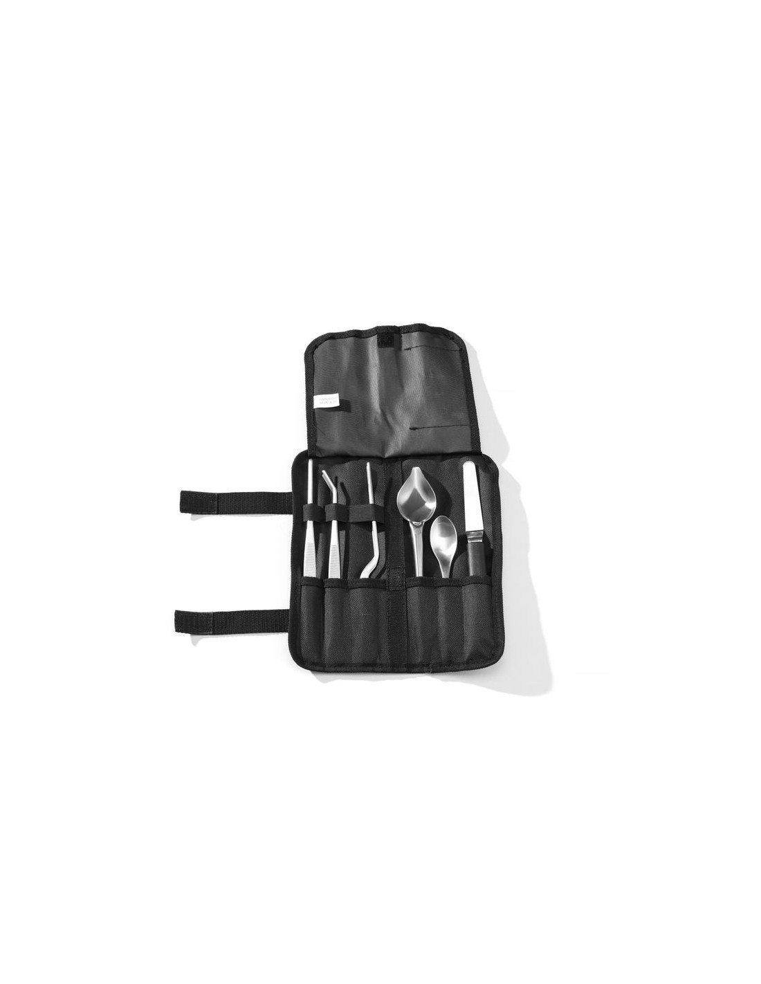 - Etui med 6 verktyg: 3 pincetter, 2 skedar, 1 spatel.