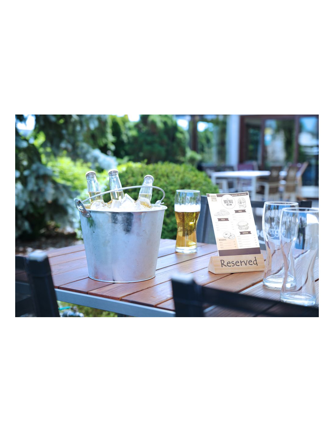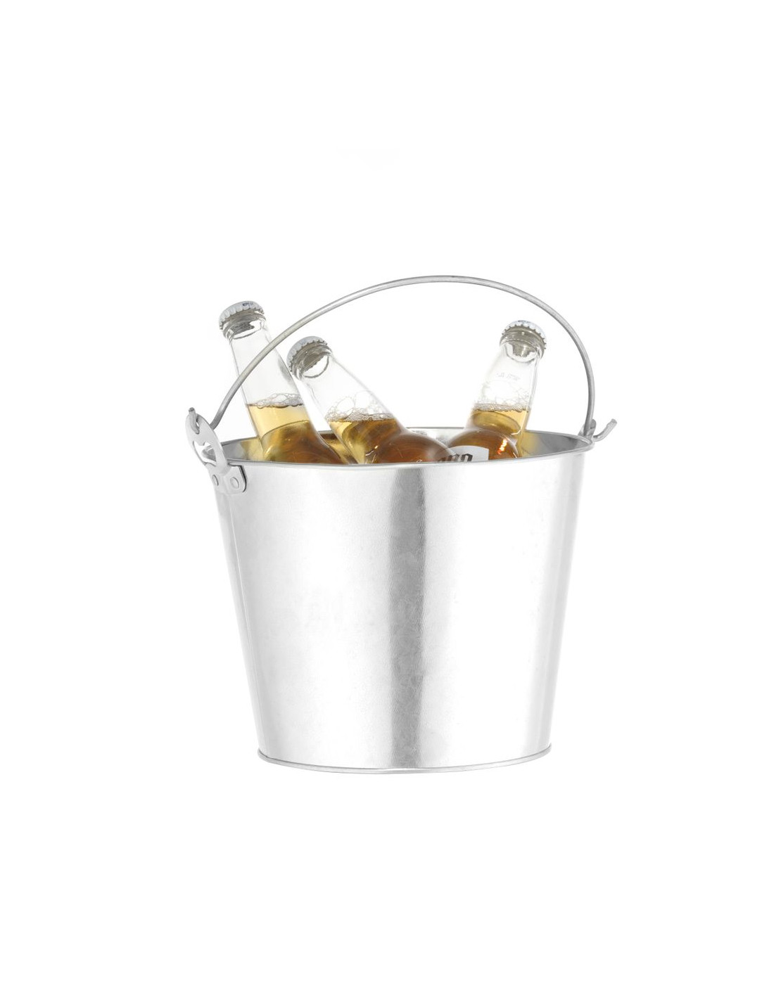 Tillverkad av galvaniserad stålplåt, vilket skapar ett rustikt utseende. Galvaniserat stål är inte avsett för kontakt med livsmedel, klä hinkarna med våra bakplåtspappersark när du använder dem för servering av mat.