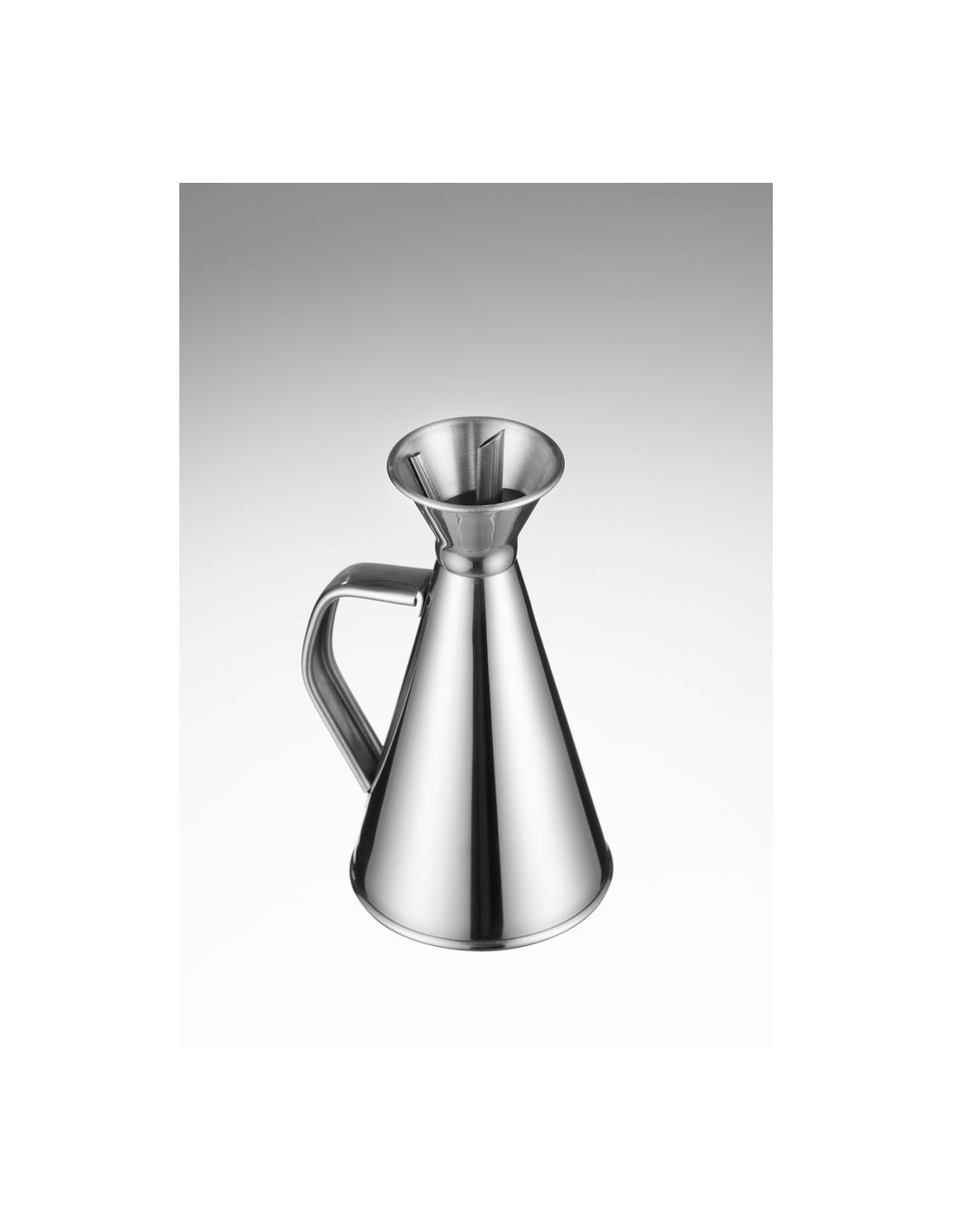 Tillverkad av polerat rostfritt stål. Konisk form som garanterar stabilitet. Avtagbar propp med pip.