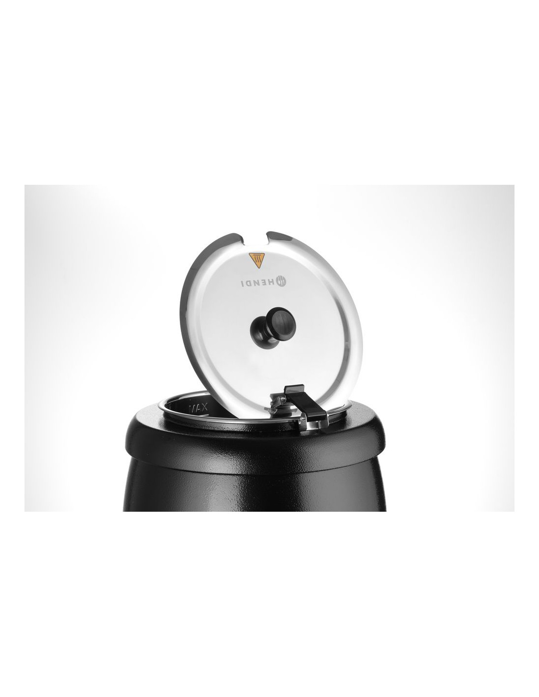 HENDI soppgryta är standardlösningen för att hålla soppor och såser redo att serveras utan att de bränns vid. Dess beprövade design sparar plats på buffén och diskbänken. Soppbehållaren är avtagbar för enkel byte och locket har en skåra för slev.