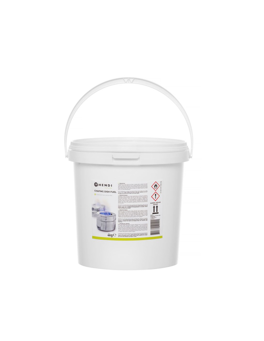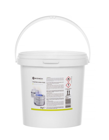 Bränsle för chafing dish är tillverkat av naturlig etanolalkohol, blandat med vatten och ett förtjockningsmedel för att göra det till en fast substans eller gel. HENDI chafing dish-bränsle är artificiellt framställt för att smaka så bittert att det är omöjligt att svälja. För att säkert och effektivt värma chafing dish rekommenderar vi starkt att placera chafing dish-bränsleburken i de angivna bränslehållarna. Värmekapaciteten är densamma över hela ugnen medan uppvärmningshastigheten beror på lågans storlek, bestämd av hur långt locket på chafing dish-bränsleburken hålls öppet. Allt HENDI chafing dish-bränsle brinner sotigt och luktfritt. Kartuscher och burkar som brinner utan chafing dish-bränsleburken blir mycket varma under användning, vilket skapar en betydande risk för brännskador om de inte placeras inuti chafing dish-bränsleburken. Risk för brännskador! Dessa chafing dish-bränsleburkar ingår i HENDI chafing dish och säljs separat. Läs alltid produktinstruktionerna före användning. Se till att det inte finns några öppna lågor eller heta föremål i närheten när du arbetar med chafing dish-bränsle. De brandfarliga ångorna läcker lätt ut ur behållaren. Se till att inget vatten (kondens) droppar ner i det brinnande bränslet. Det kan orsaka farlig stotning och stänk av bränsle. Tänd endast bränslet efter att du placerat bränslebehållaren med burken på sin slutgiltiga plats. Lågorna är nästan helt blå, vilket gör dem mycket svåra att se i ljuset. Försiktighet rekommenderas. Släck endast bränslet genom att stänga locket på bränslebehållaren. Påfyllning: Se alltid till att burken och dess hållare har svalnat helt. Ta ut burken ur bränslebehållaren för att fylla på burken. Förvaring: Förvara alltid i slutna behållare på en mörk och välventilerad plats, under 20 °C. För att förvara större mängder bränsle, vänligen kontakta lokala föreskrifter. Om ovanstående instruktioner följs är risken för olyckor minimal. Vid en liten brand: använd en brandfilt (eller en stor, våt filt) för att täcka elden och beröva den syre. Vid brand på kläder/kropp: använd en brandfilt eller en pulver-/CO2-brandsläckare. Försök aldrig att släcka elden med en liten handduk eftersom det bara sprider bränslet och lågorna! Håll kroppen sval i 15 minuter eller tills läkarhjälp anländer efter att du släckt elden. Lämna kläderna kvar. Sök alltid omedelbart läkarhjälp.