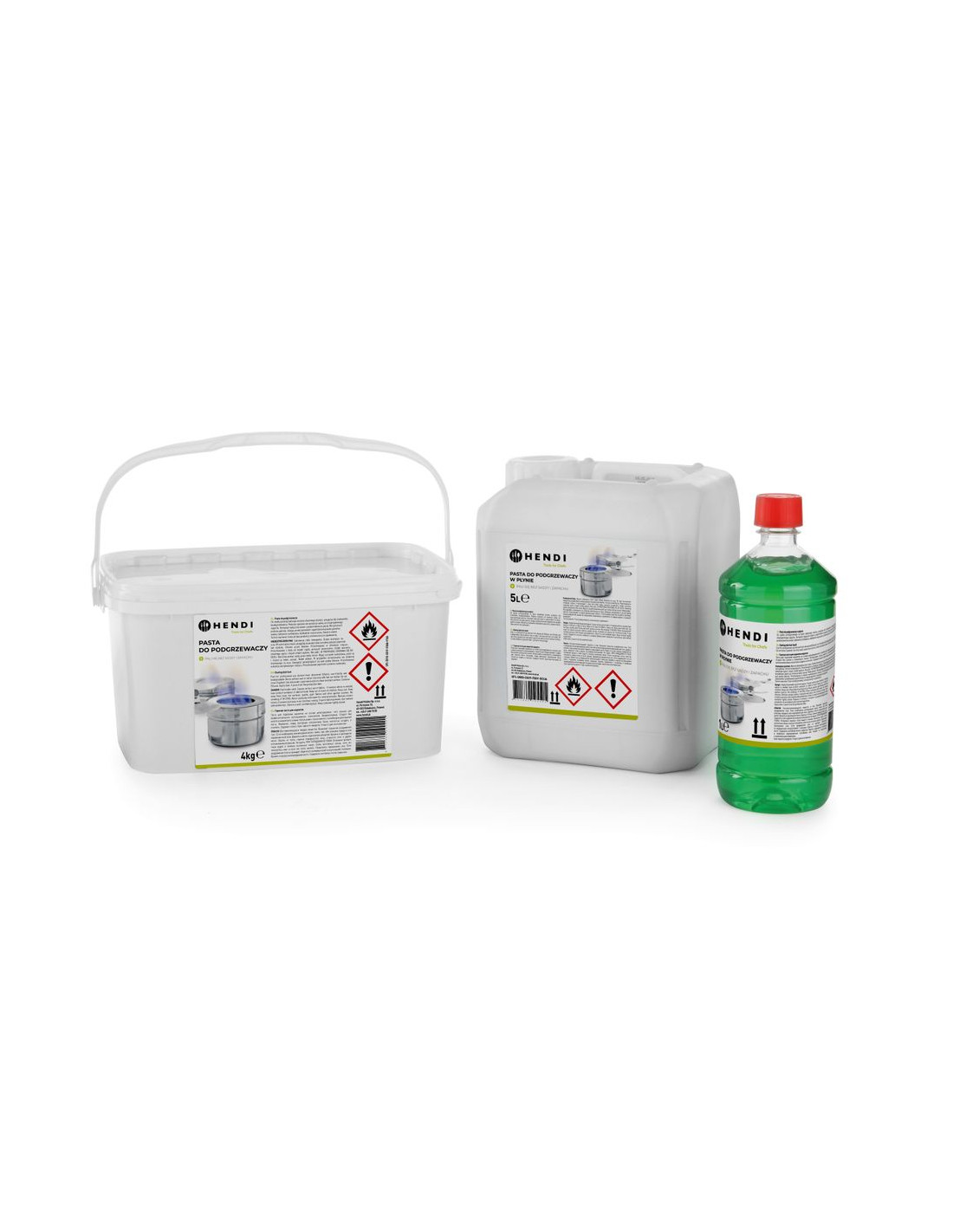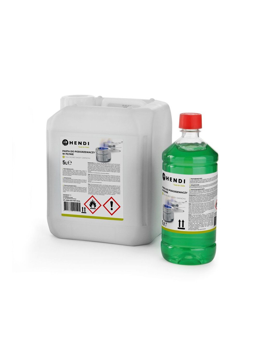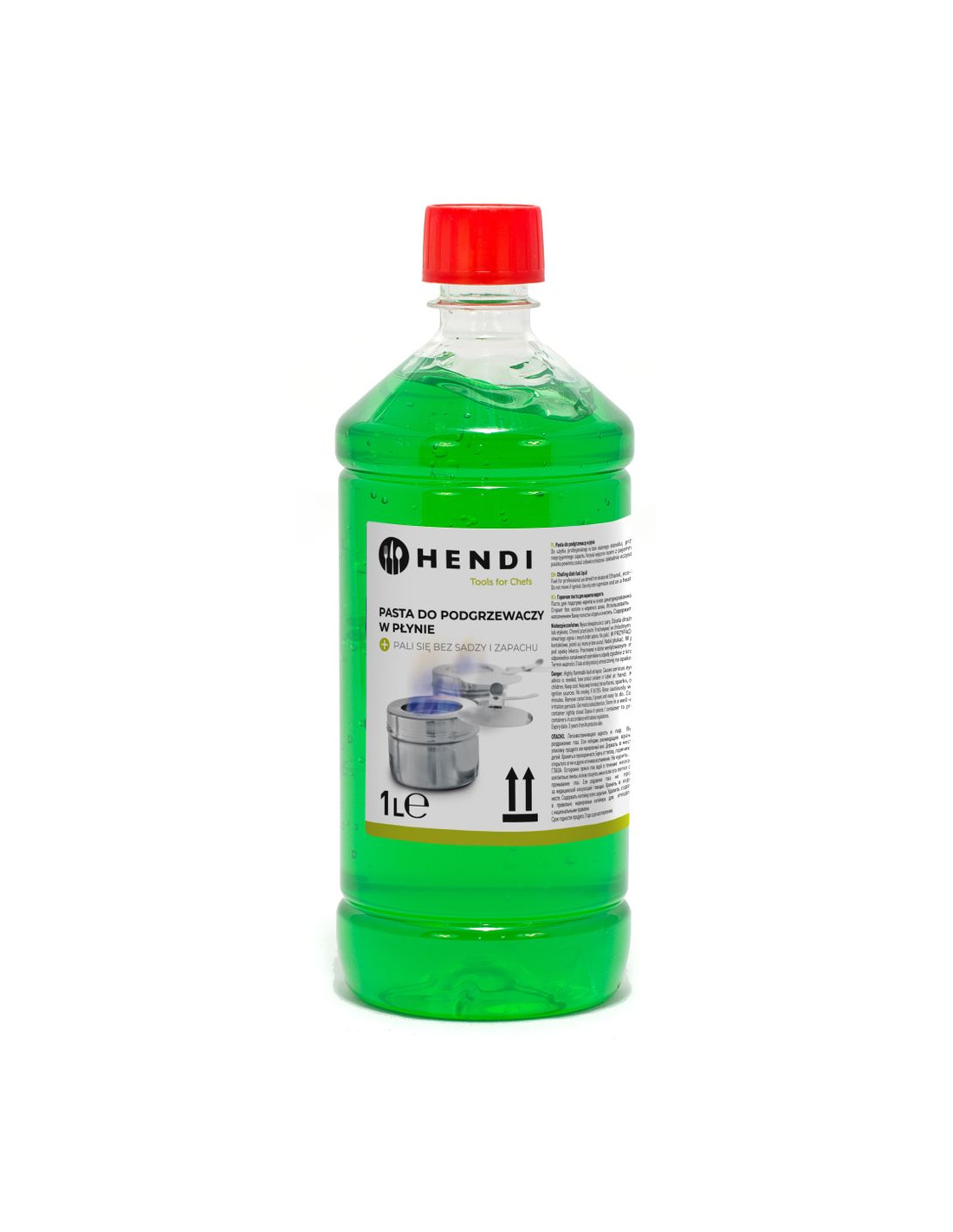 Bränsle för chafing dish är tillverkat av naturlig etanolalkohol, blandat med vatten och ett förtjockningsmedel för att göra det till en fast substans eller gel. HENDI chafing dish-bränsle är artificiellt framställt för att smaka så bittert att det är omöjligt att svälja. För att säkert och effektivt värma chafing dish rekommenderar vi starkt att placera chafing dish-bränsleburken i de angivna bränslehållarna. Värmekapaciteten är densamma över hela ugnen medan uppvärmningshastigheten beror på lågans storlek, bestämd av hur långt locket på chafing dish-bränsleburken hålls öppet. Allt HENDI chafing dish-bränsle brinner sotigt och luktfritt. Kartuscher och burkar som brinner utan chafing dish-bränsleburken blir mycket varma under användning, vilket skapar en betydande risk för brännskador om de inte placeras inuti chafing dish-bränsleburken. Risk för brännskador! Dessa chafing dish-bränsleburkar ingår i HENDI chafing dish och säljs separat. Läs alltid produktinstruktionerna före användning. Se till att det inte finns några öppna lågor eller heta föremål i närheten när du arbetar med chafing dish-bränsle. De brandfarliga ångorna läcker lätt ut ur behållaren. Se till att inget vatten (kondens) droppar ner i det brinnande bränslet. Det kan orsaka farlig stotning och stänk av bränsle. Tänd endast bränslet efter att du placerat bränslebehållaren med burken på sin slutgiltiga plats. Lågorna är nästan helt blå, vilket gör dem mycket svåra att se i ljuset. Försiktighet rekommenderas. Släck endast bränslet genom att stänga locket på bränslebehållaren. Påfyllning: Se alltid till att burken och dess hållare har svalnat helt. Ta ut burken ur bränslebehållaren för att fylla på burken. Förvaring: Förvara alltid i slutna behållare på en mörk och välventilerad plats, under 20 °C. För att förvara större mängder bränsle, vänligen kontakta lokala föreskrifter. Om ovanstående instruktioner följs är risken för olyckor minimal. Vid en liten brand: använd en brandfilt (eller en stor, våt filt) för att täcka elden och beröva den syre. Vid brand på kläder/kropp: använd en brandfilt eller en pulver-/CO2-brandsläckare. Försök aldrig att släcka elden med en liten handduk eftersom det bara sprider bränslet och lågorna! Håll kroppen sval i 15 minuter eller tills läkarhjälp anländer efter att du släckt elden. Lämna kläderna kvar. Sök alltid omedelbart läkarhjälp.