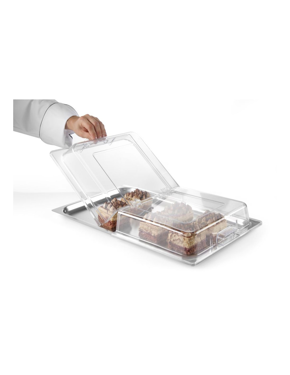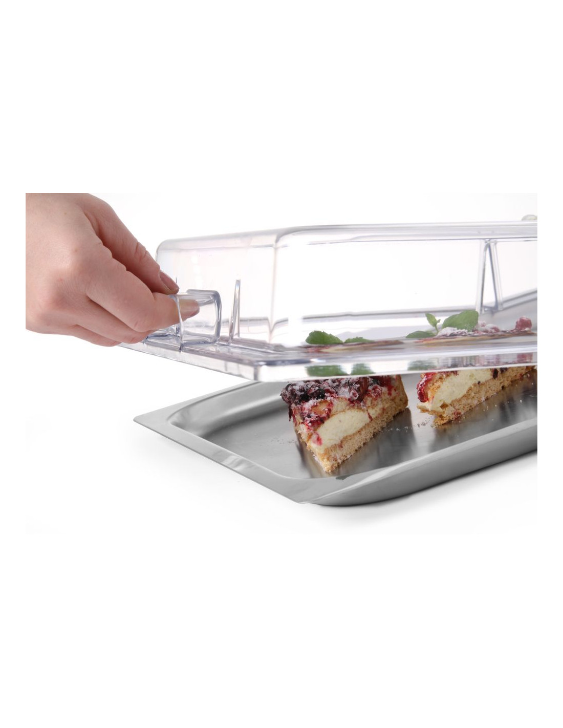 Hendi presentationslock GN 1/1 tillverkat av transparent polykarbonat är ett tillbehör till GN bankettbrickor.