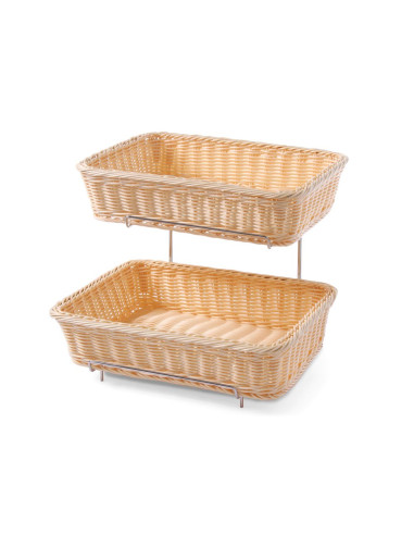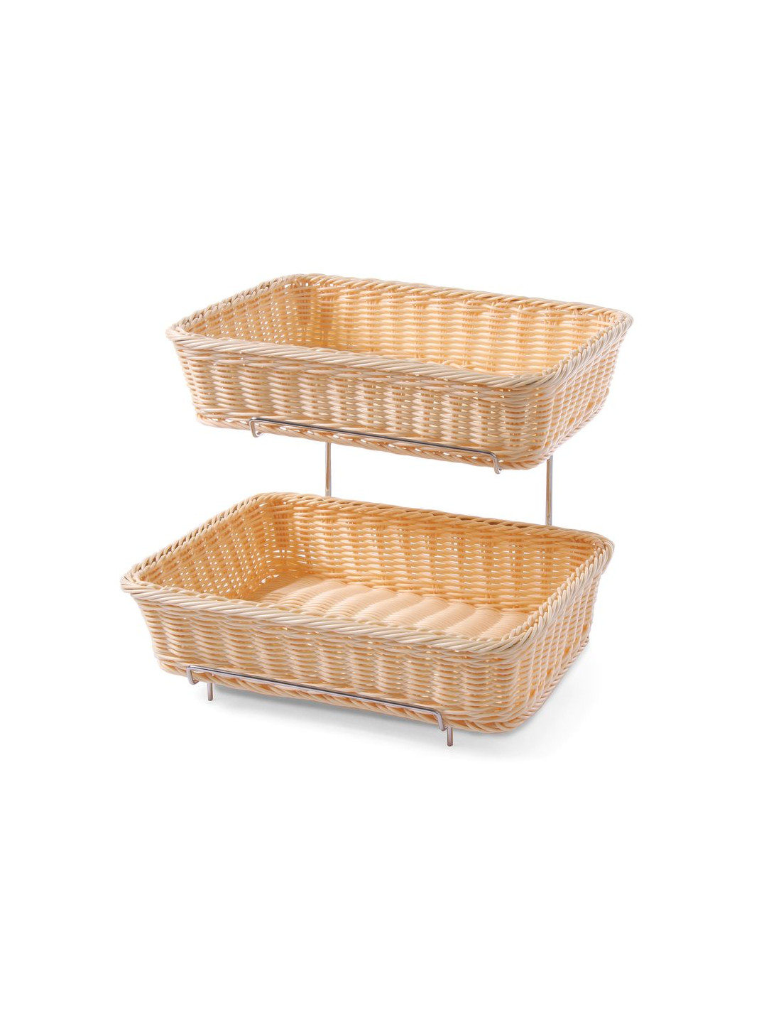 Set med 2 korgar med förkromat stativ. Korgar förstärkta med en ram av rostfritt ståltråd. Korgens mått: 360x280x(H)90 mm. Stativet tål inte diskmaskin.