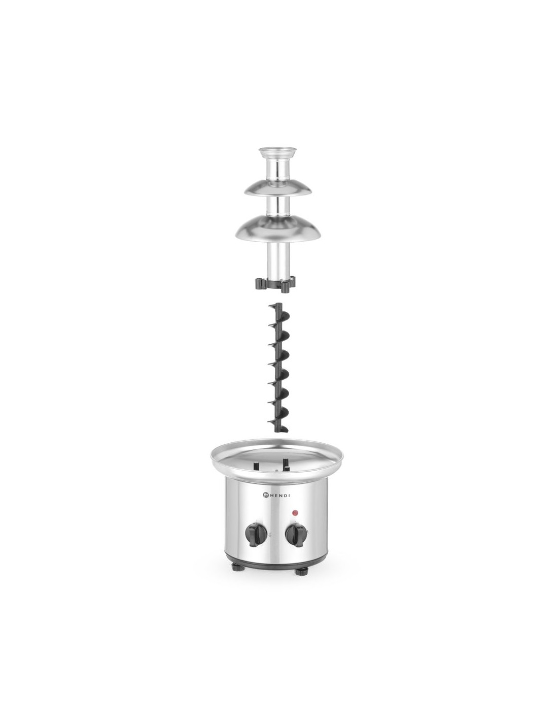 HENDI chokladfontän i 3 nivåer har ett robust hölje i rostfritt stål och rymmer upp till 1,5 kg smält choklad, perfekt för servering vid alla evenemang. Den justerbara värmetemperaturen säkerställer ett jämnt flöde av choklad, medan det inbyggda överhettningsskyddet garanterar säker och bekymmersfri användning varje gång.