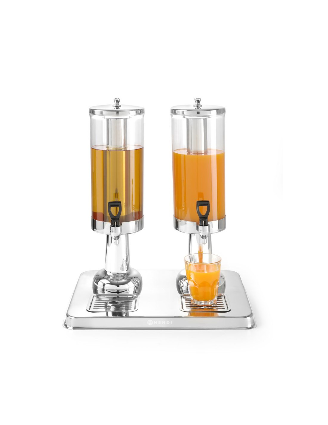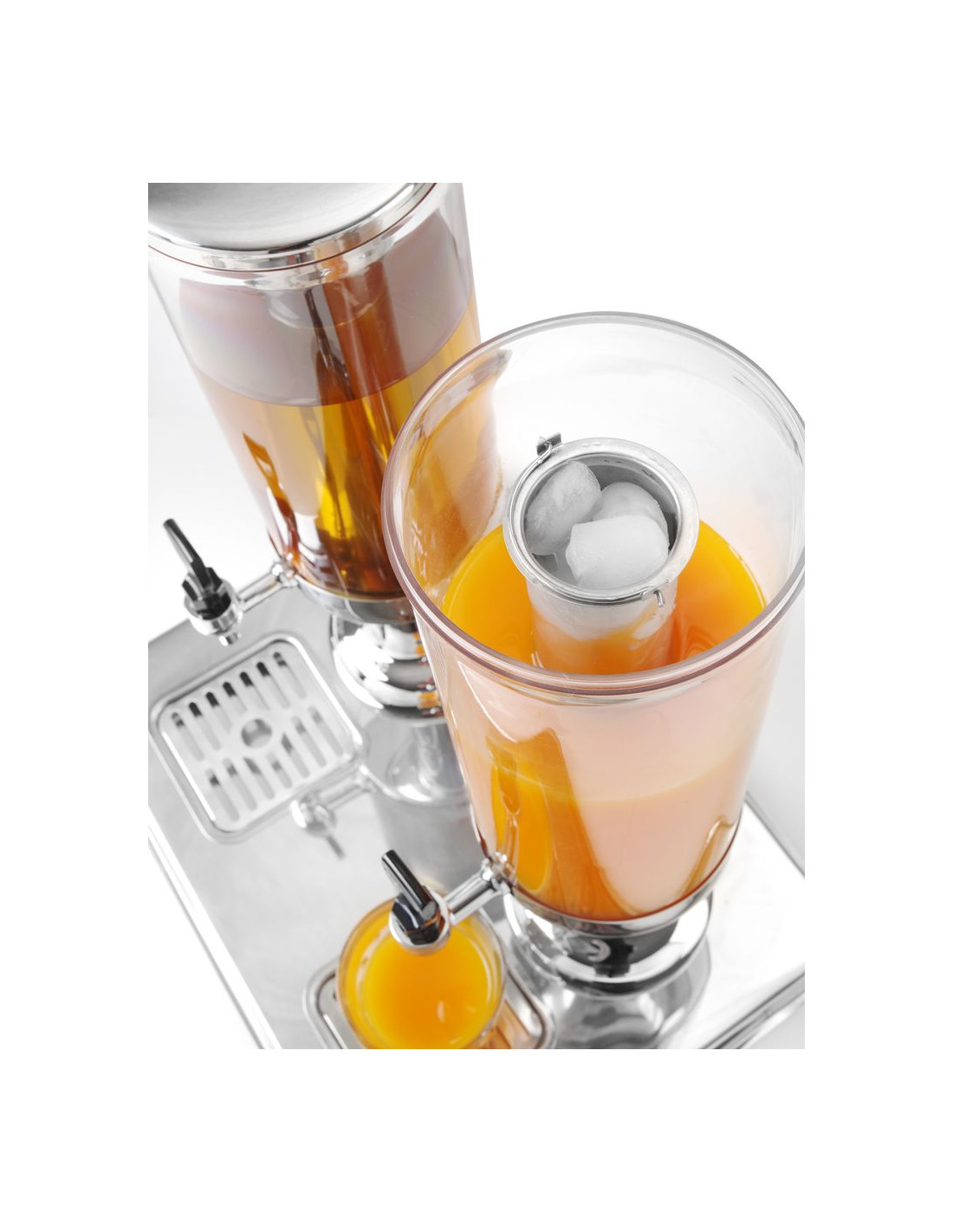 Med kylning av iscylinder. Lättrengörlig droppbricka. Klar juicebehållare i polykarbonat. Med droppfri kran.