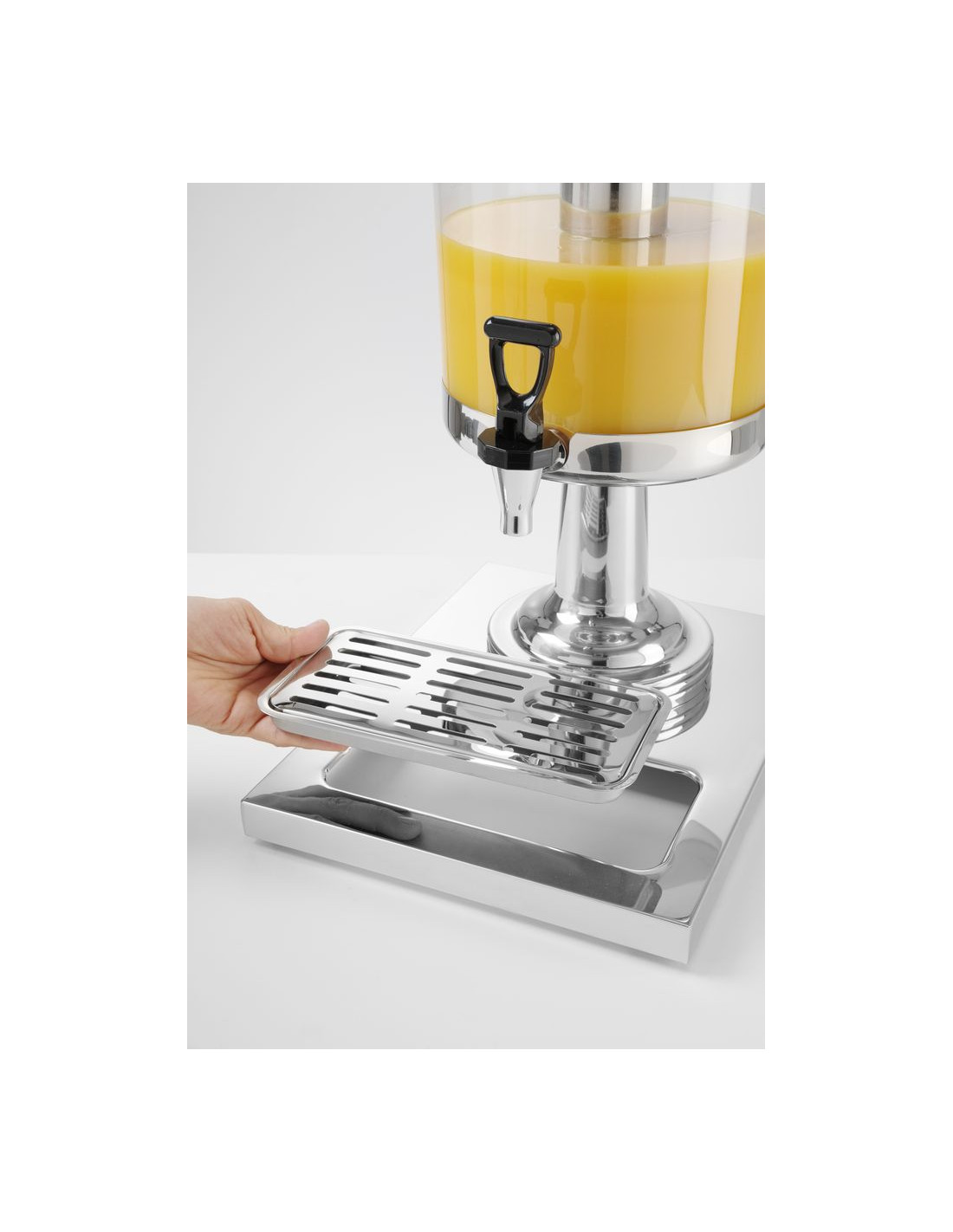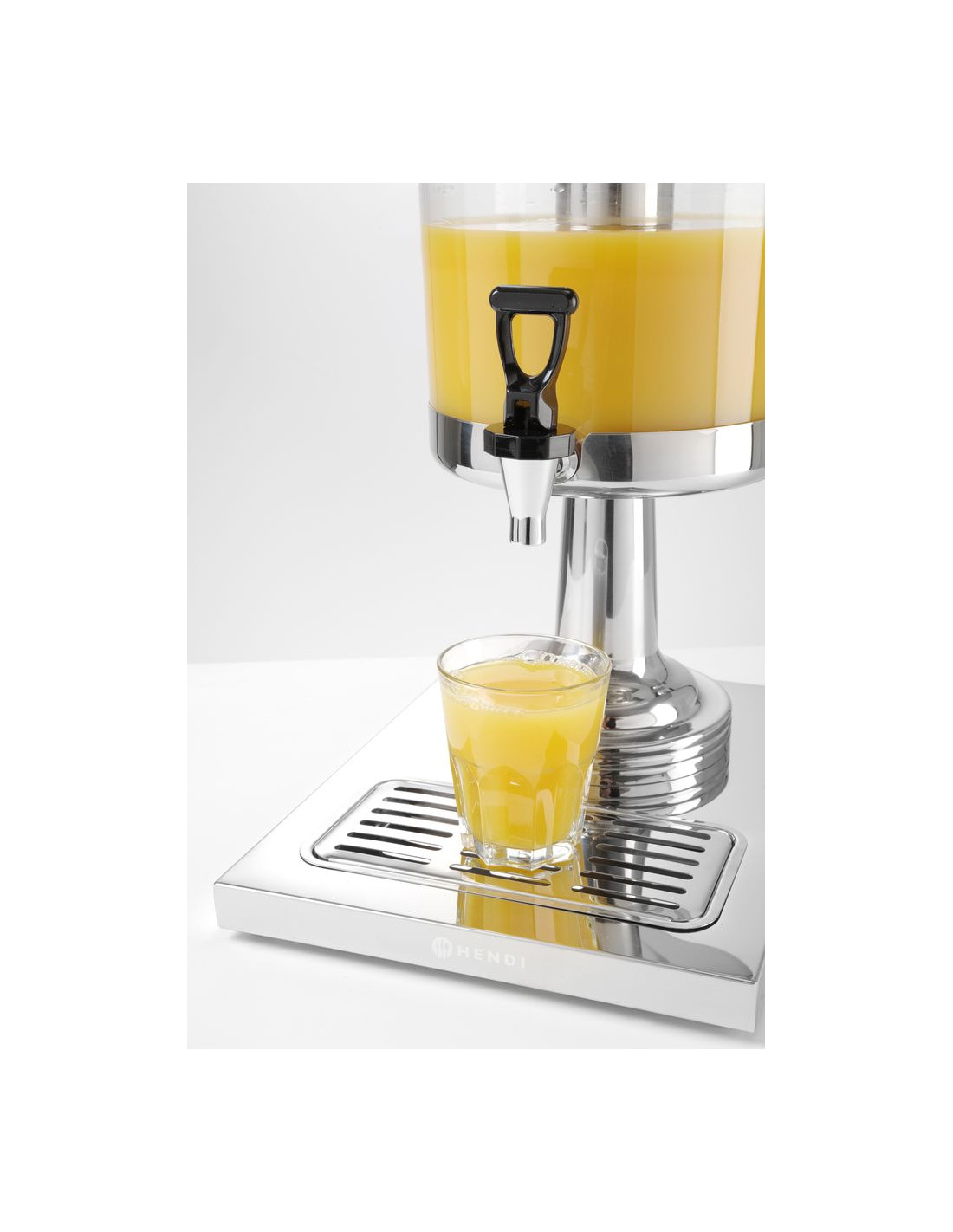 Med kylning av iscylinder. Lättrengörlig droppbricka. Klar juicebehållare i polykarbonat. Med droppfri kran.