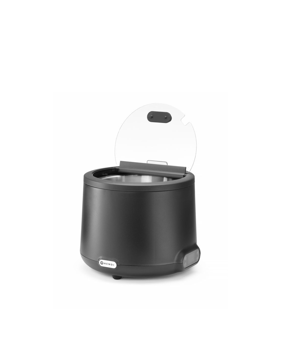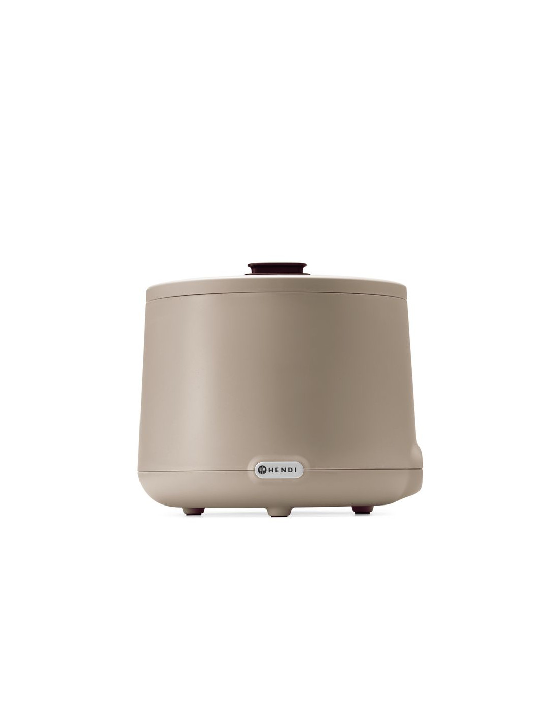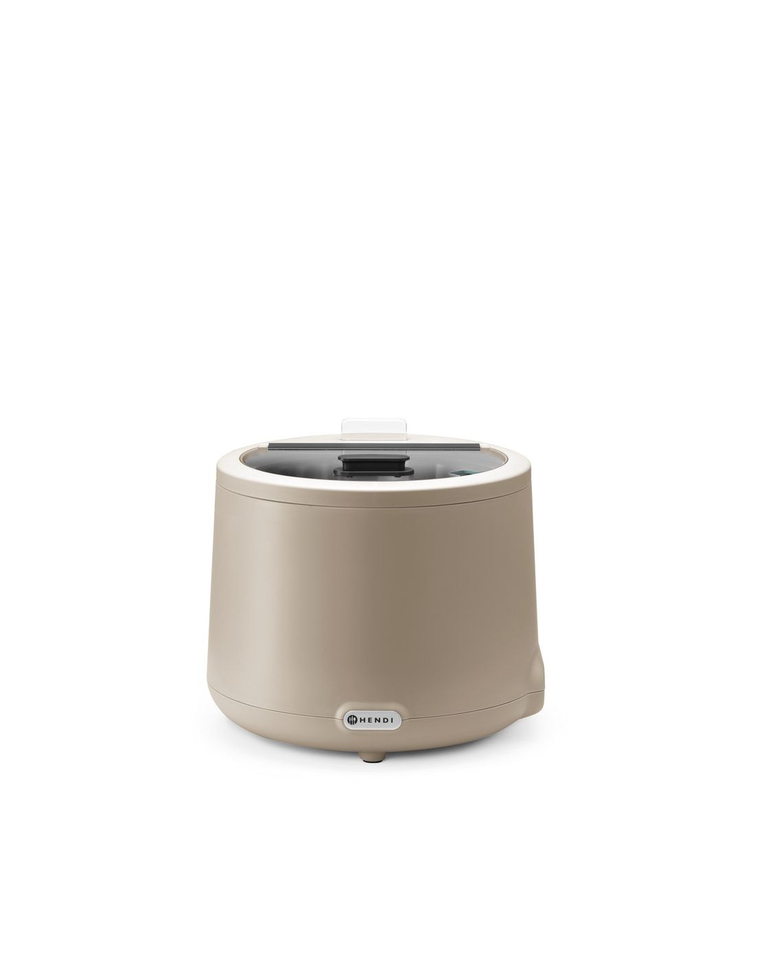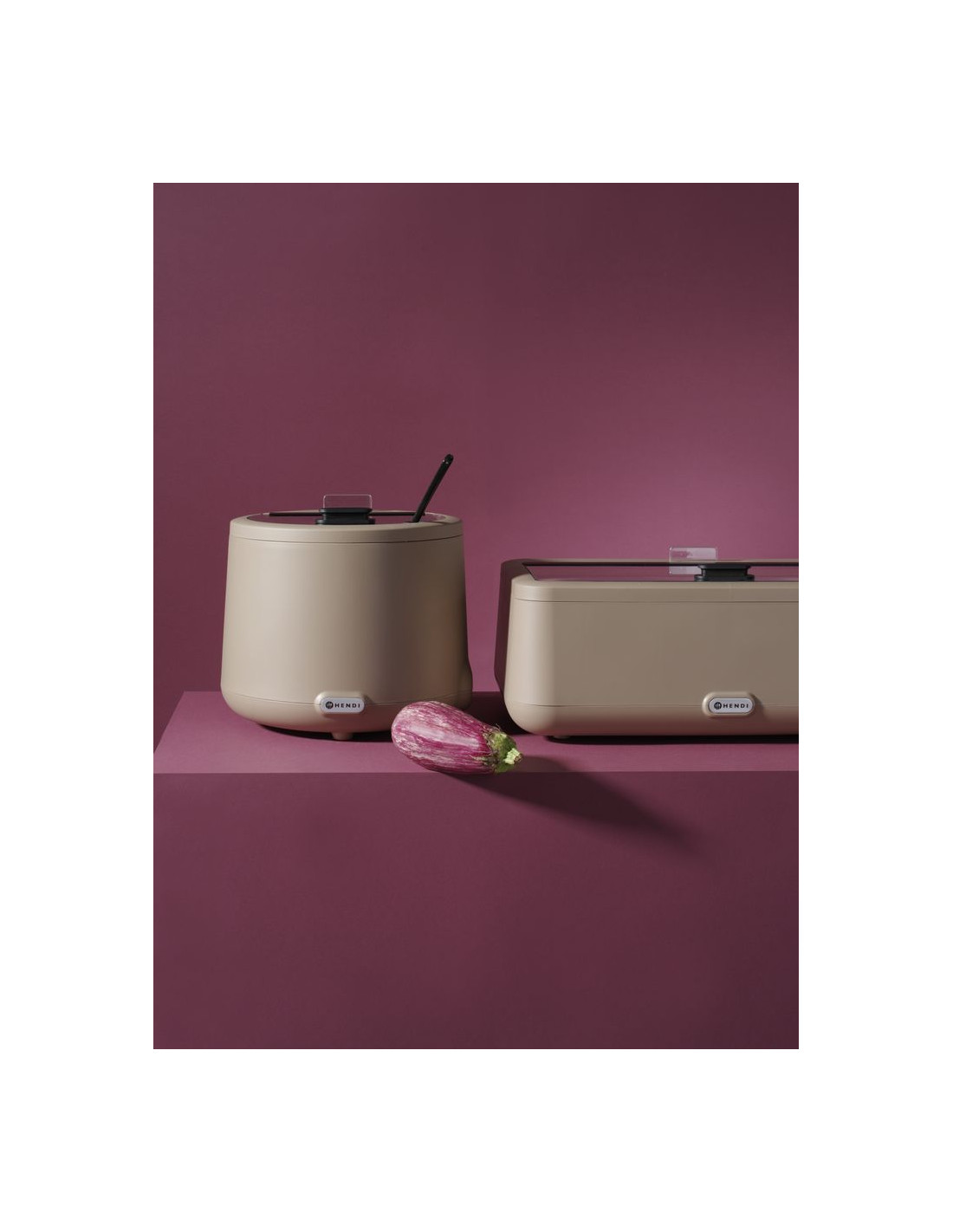 HENDI UNIQ designades av den välkände holländska designern Robert Bronwasser och finns i fyra snygga färger. Det moderna höljet har ett par enastående funktioner. Den senast inställda temperaturen lagras i minnet. Anslut bara soppan, fyll vattenbehållaren och soppgrytan håller soppan vid perfekt serveringstemperatur.