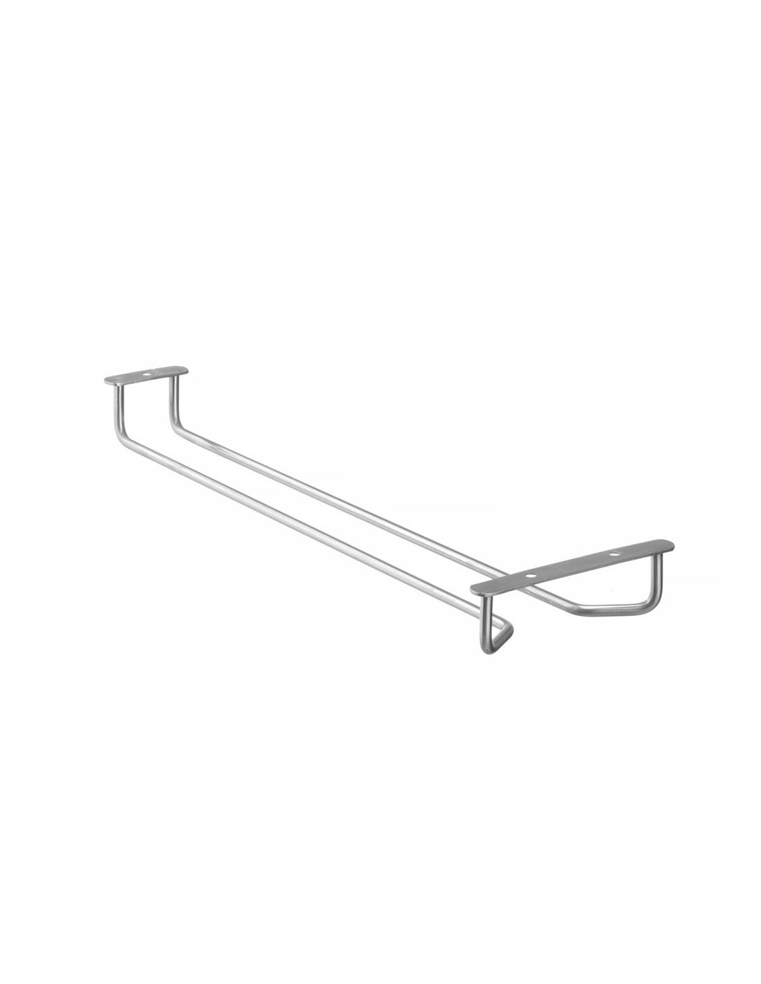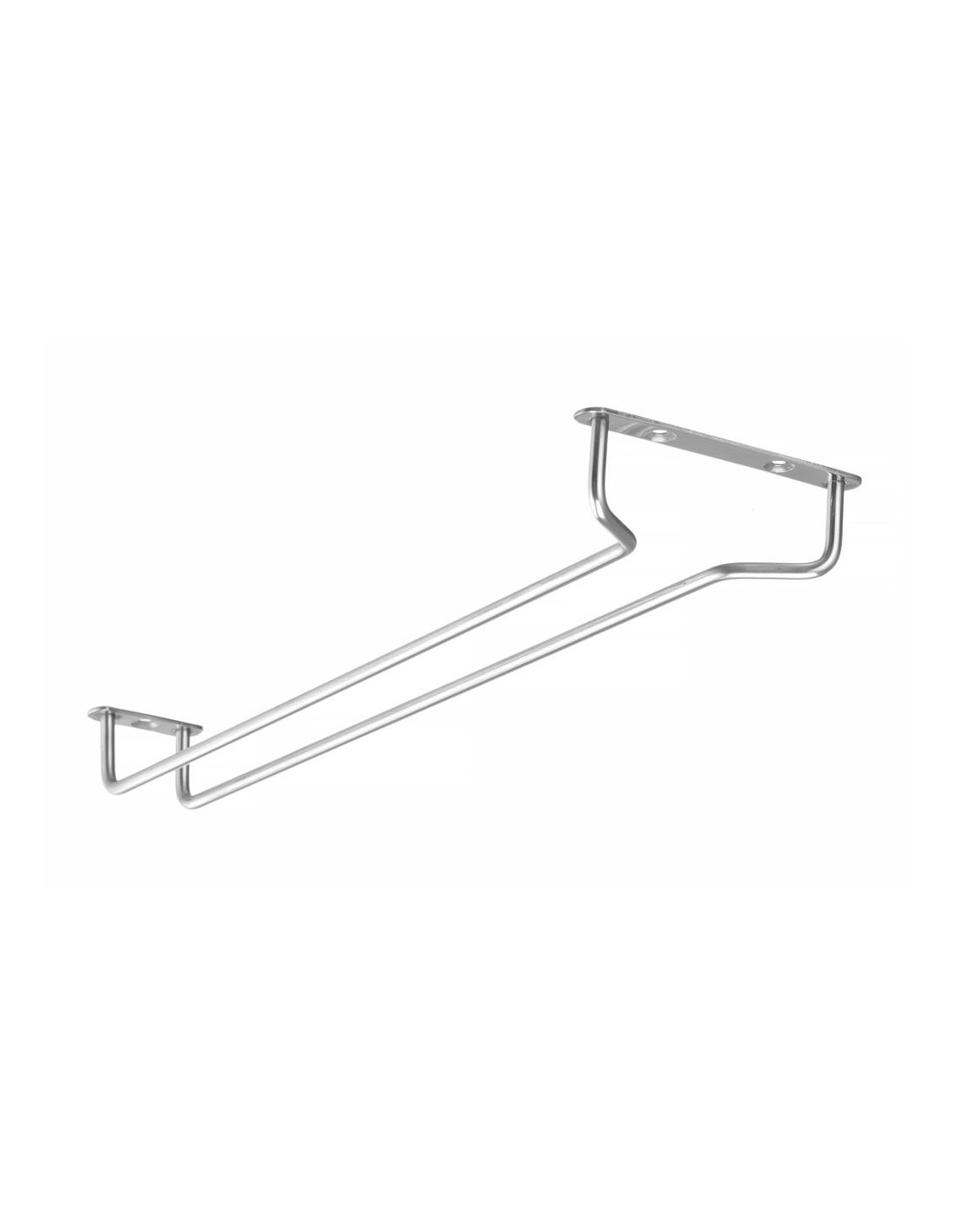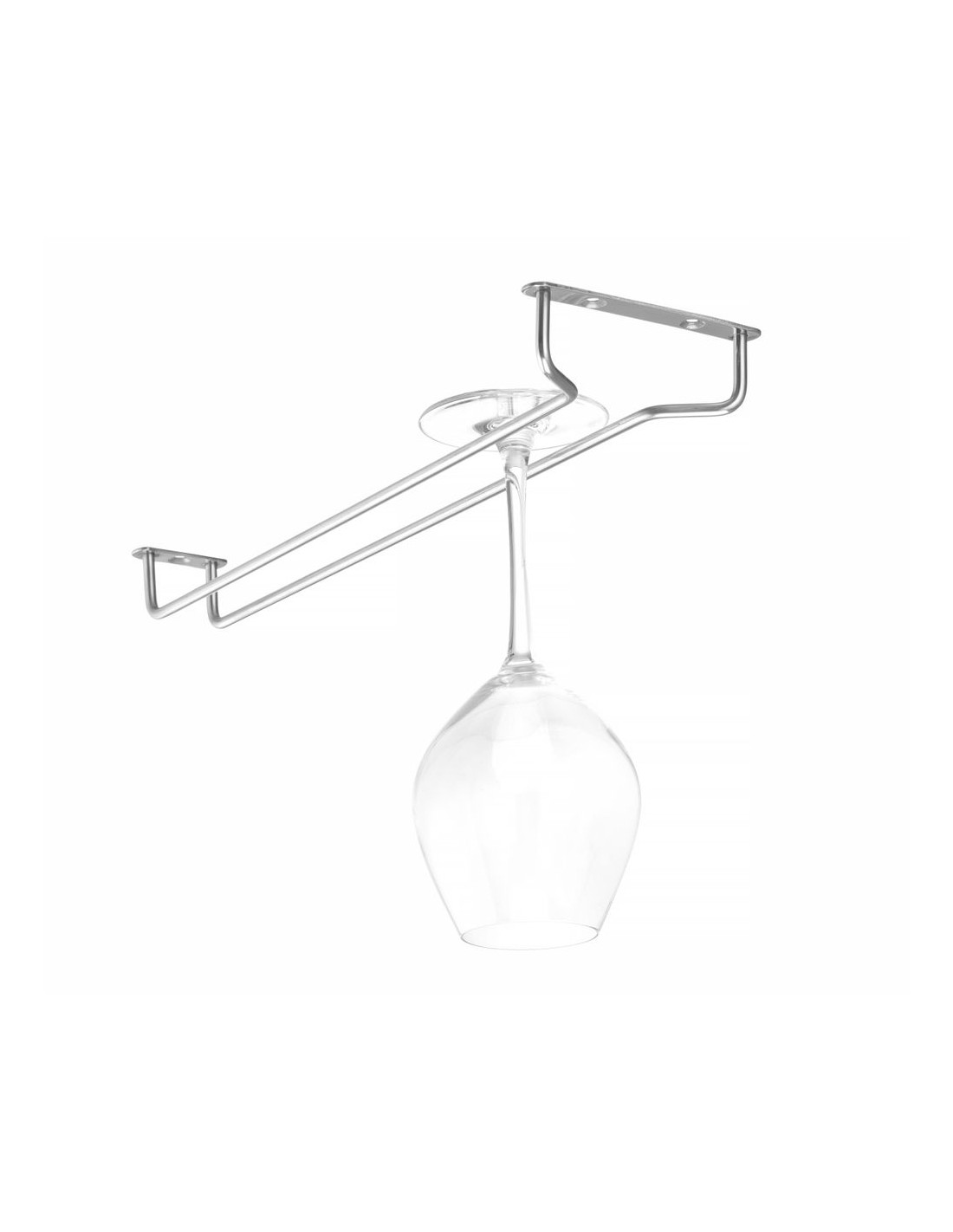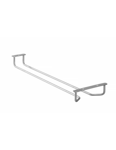 Tillverkad av rostfritt stål. Kan hängas under en hylla. 1 rad avsedd för glas. Skruvar och väggplugg ingår.