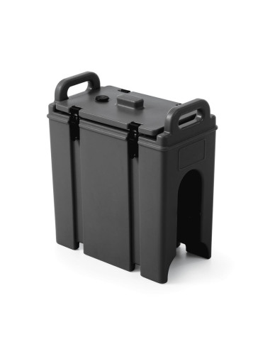 Perfekt för förvaring, transport och servering av varma och kalla drycker. Robust hölje i LDPE-polyeten. Bra isolering av polyuretanskum. 4 kraftiga klämmor, 25 mm breda, på vardera sidan av kannan, för enkel och snabb öppning och stängning. Bekväma transportgrepp. Avstånd från kran till golvet: 95 mm. Infälld kran - skydd mot transportskador. Levereras med klistermärken för snabb identifiering av drycker. Ventil för enklare öppning av locket. Stöt- och slagtålig. Rundad kammare med spår som leder till kranen.
