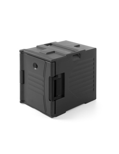 Dubbelväggig isolerad polyeten LDPE. Håller varmt och kallt. Med 2 robusta bärhandtag. Pressformade gejdrar monterade i kammarhöljet. Innermått: 335x533x(H)590 mm. Lämplig för 1/1 Gastronorm-brickor: – 12 GN-brickor, 10 mm djupa; – 6 GN-brickor, 65 mm djupa; – 4 GN-brickor, 100 mm djupa; – 3 GN-brickor, 150 mm djupa; – 2 GN-brickor, 200 mm djupa.