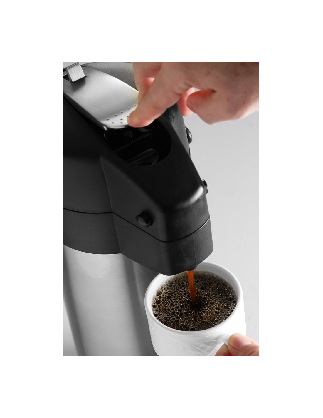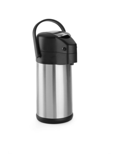 HENDI Air-krukan har en konstruktion i rostfritt stål, vilket gör den perfekt för servering och förvaring av varma drycker vid önskad temperatur vid alla evenemang inomhus eller utomhus. Hävstångspumpen erbjuder spillfri drift och har ett praktiskt lock som öppnas helt för enkel påfyllning och rengöring. Kompakt och lätt, med ett robust handtag för enkel transport.
