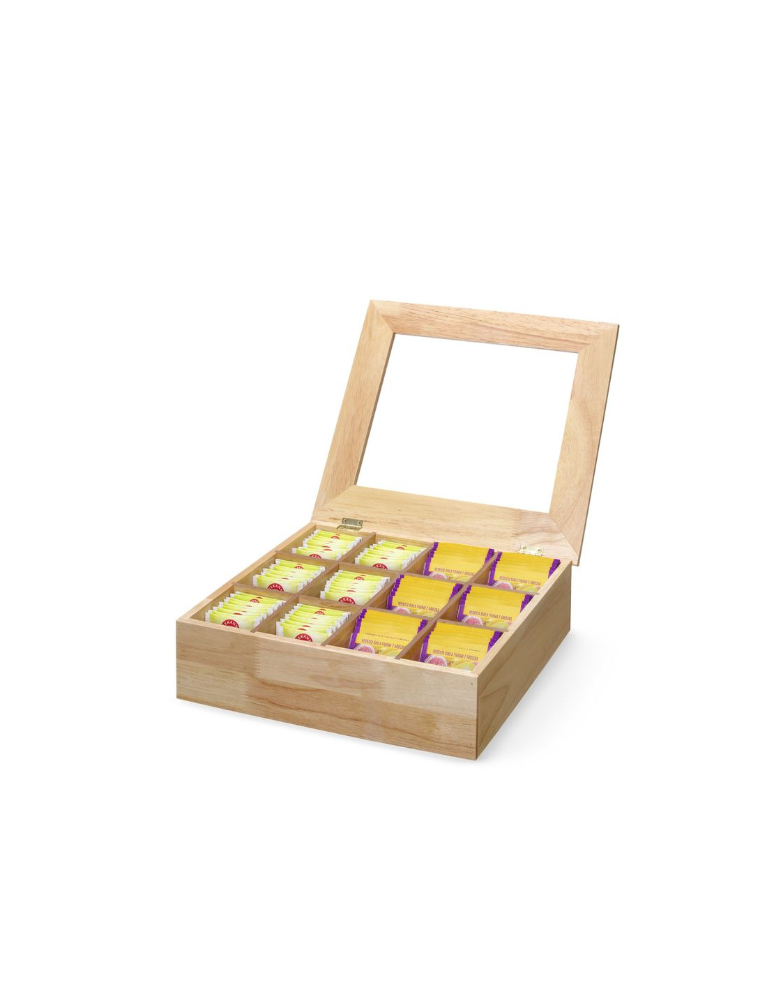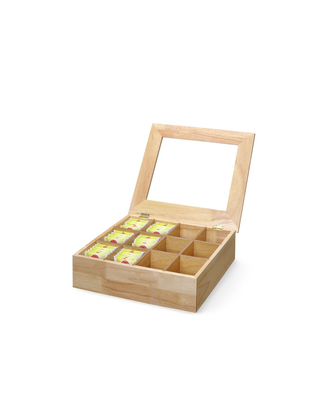 HENDI teasken i trä säkerställer att teets smak och arom bevaras väl. Den har 12 fack för att enkelt organisera många olika tesorter.