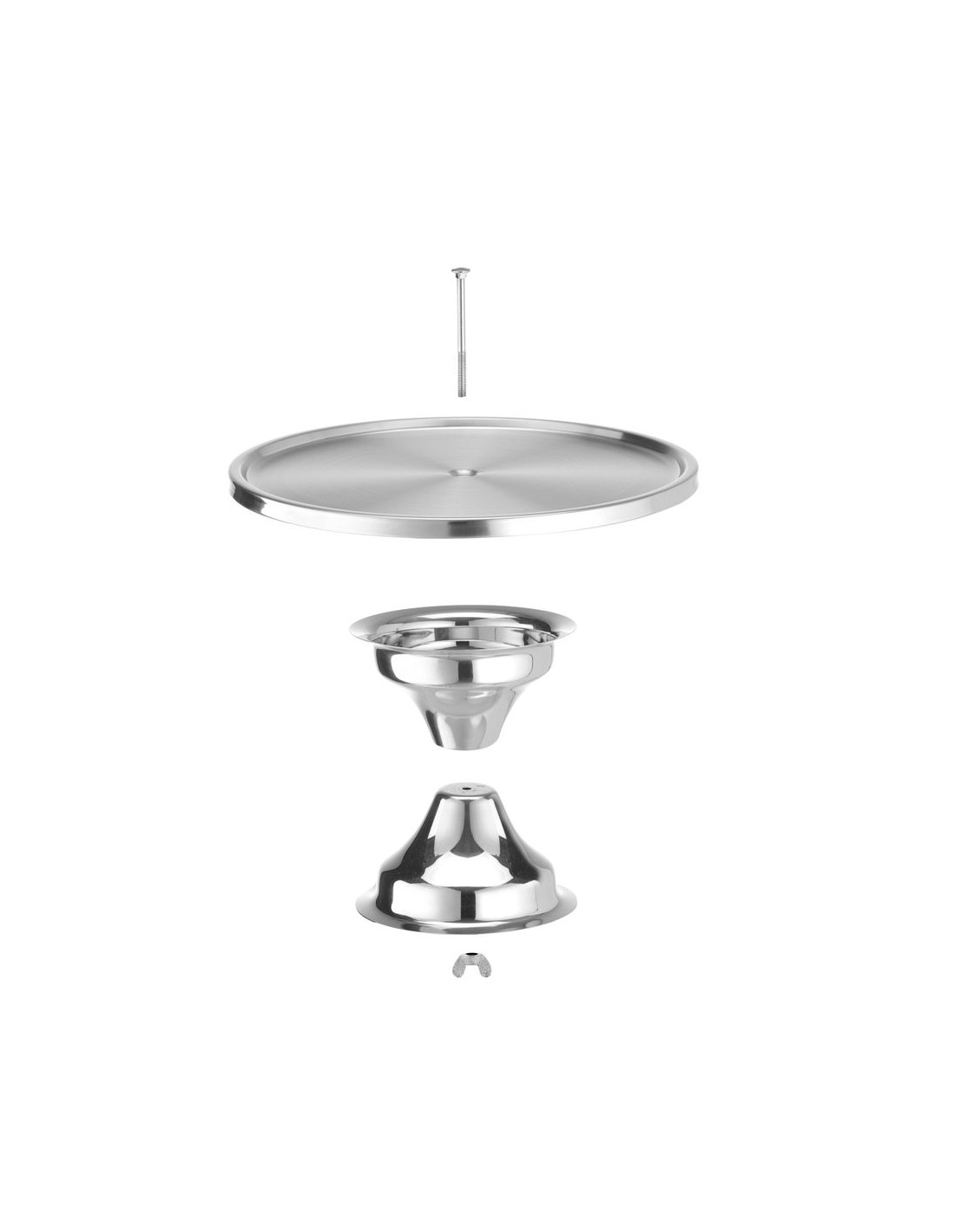 Hölje av rostfritt stål. Bred bas. Monteringsskruv ingår. Tål maskindisk.