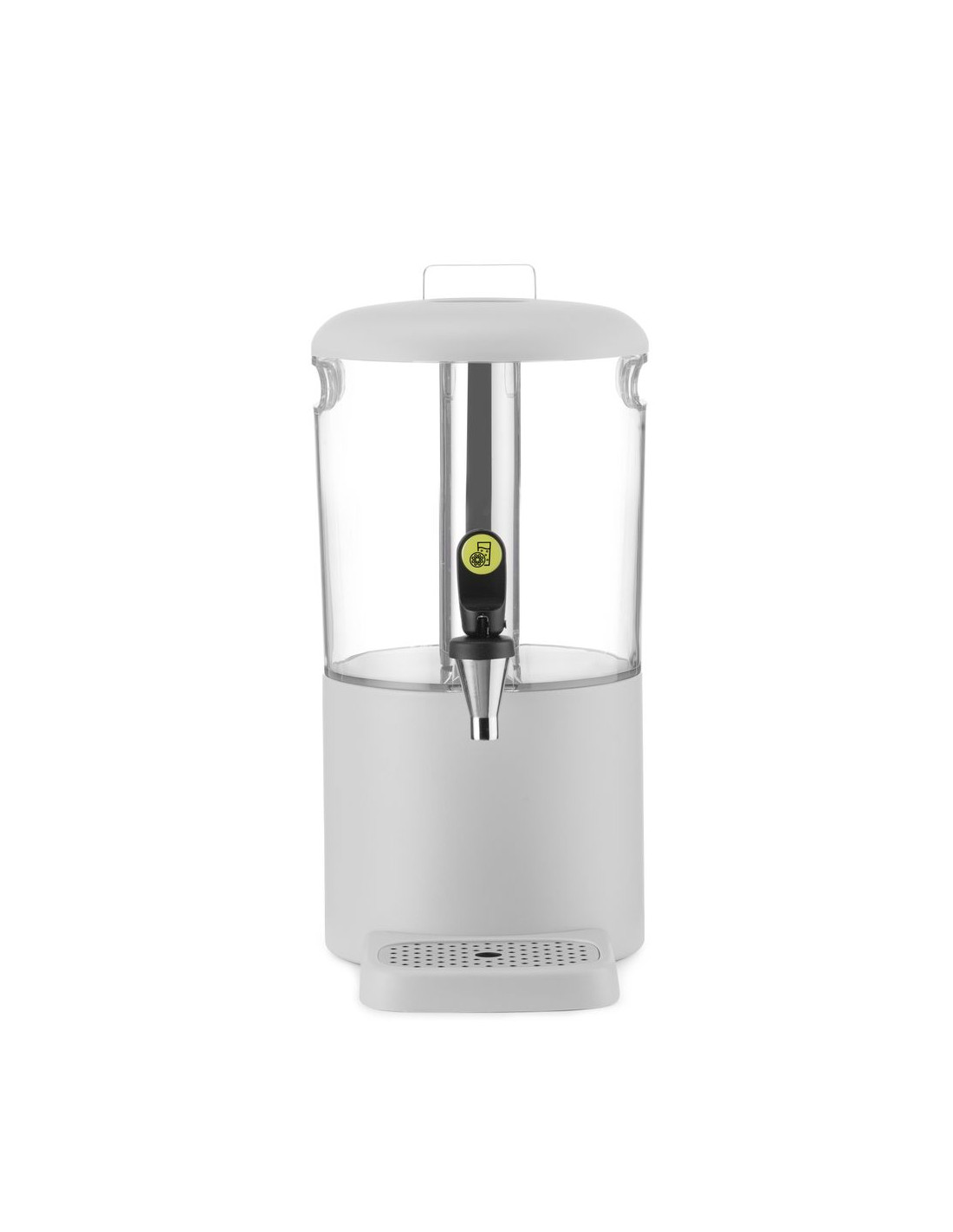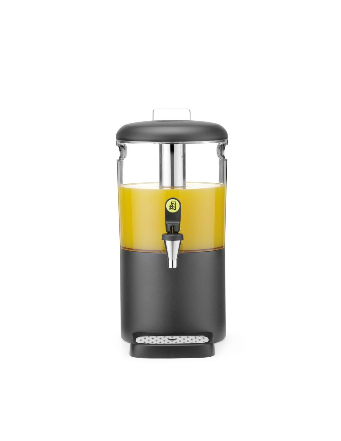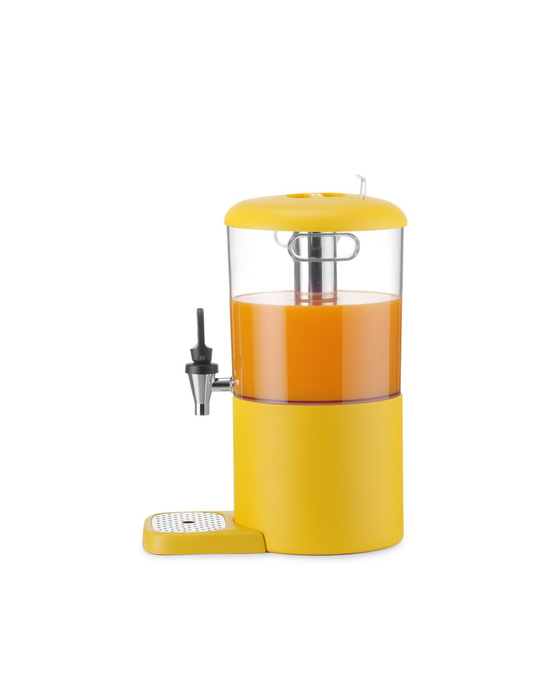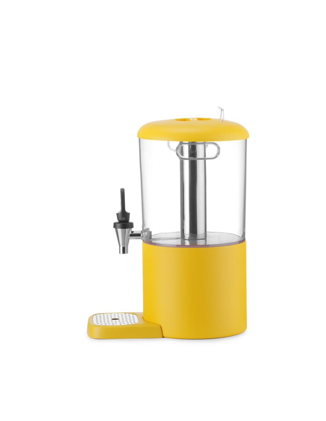 Hölje tillverkat av slitstarkt ABS. Magnetisk droppbricka med färgmatchad hölje, lätt att rengöra, med perforerad insats i rostfritt stål. Avtagbar kylstång i rostfritt stål för is hjälper till att hålla dryckerna kalla. Snabb montering och demontering säkerställer enkelt hygieniskt underhåll. Dryckesbehållare utformad för att minimera rester i botten. Praktiska bärhandtag för enkel transport av dispensern. Färgglad bas tillverkad av polypropen. Etiketthållare för drycksidentifiering. Droppfri kran placerad 130 mm ovanför basen. Enkel dryckesutmatning. Transparent hölje möjliggör enkel övervakning av vätskenivån. Erbjuds i två kapaciteter – 4 och 8 liter. Finns i tre färger som matchar andra delar av UNIQ-kollektionen: svart, vit och gul. Modern design av Robert Bronwasser. Tidlös färgpalett, kompletterar perfekt presentationen av kalla drycker på en buffé. HENDI Juicer är en del av den prisbelönta UNIQ-kollektionen från Buffet Reinvented-serien.