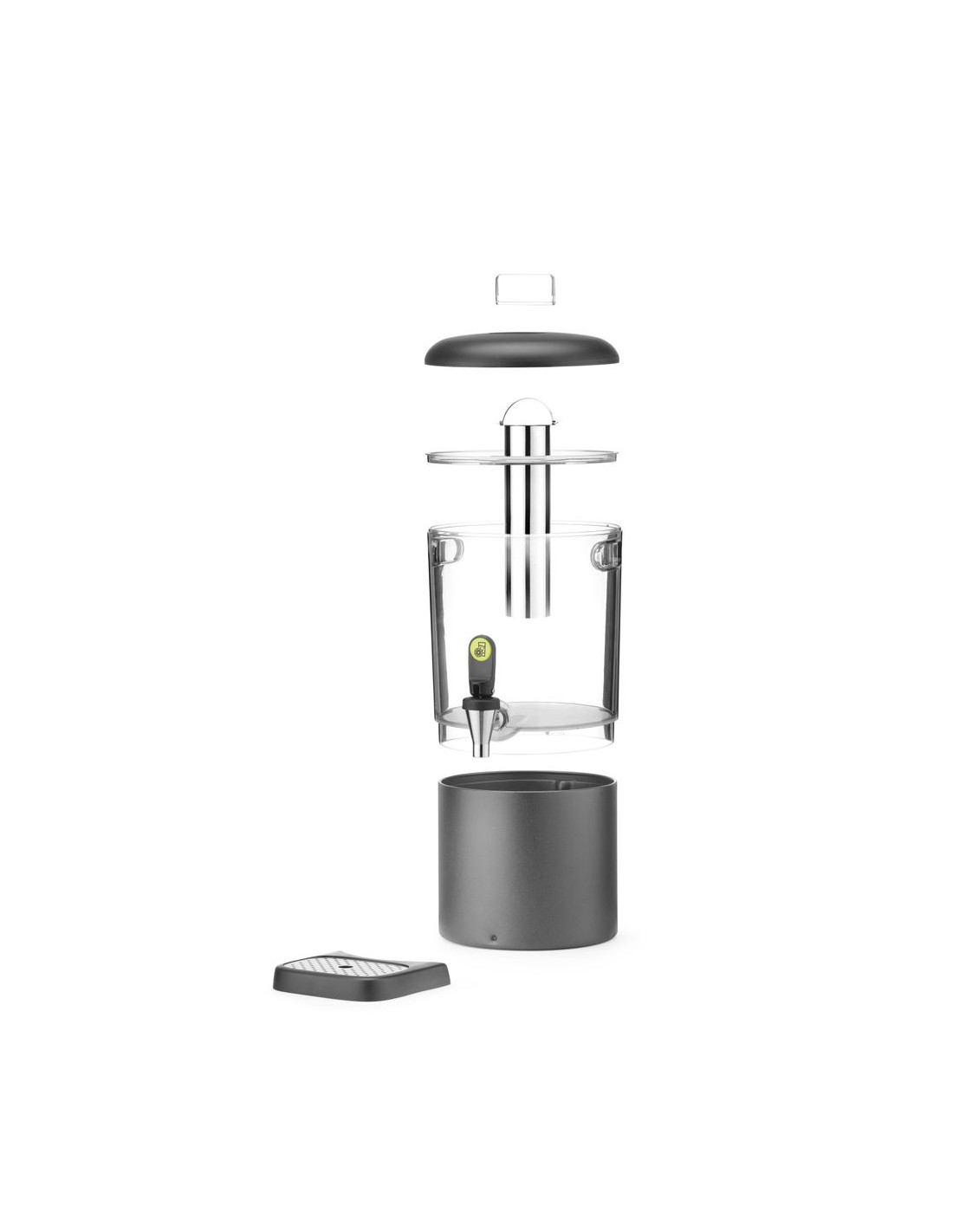 HENDI Juicer UNIQ kombinerar praktisk funktionalitet med ett rent, professionellt utseende. Den har en avtagbar kylstång i rostfritt stål, en droppfri kran placerad 130 mm ovanför ytan och en avtagbar droppbricka med färgmatchande hölje för enkel rengöring och presentation.