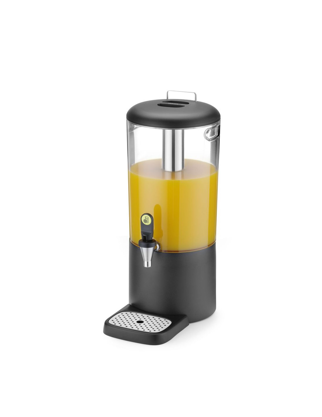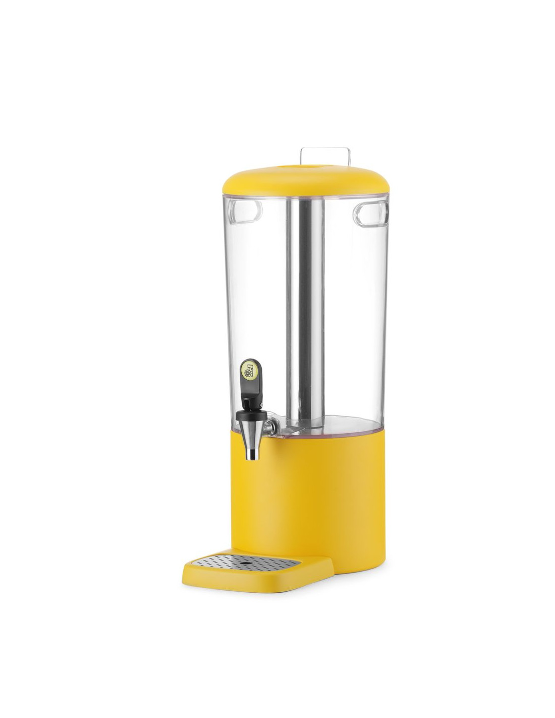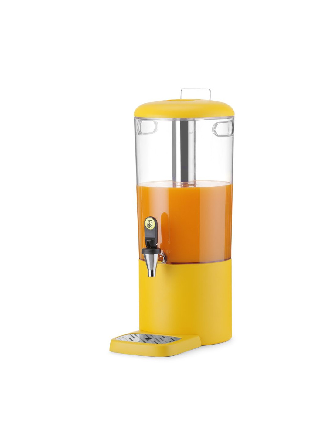 Hölje tillverkat av slitstarkt ABS. Magnetisk droppbricka med färgmatchad hölje, lätt att rengöra, med perforerad insats i rostfritt stål. Avtagbar kylstång i rostfritt stål för is hjälper till att hålla dryckerna kalla. Snabb montering och demontering säkerställer enkelt hygieniskt underhåll. Dryckesbehållare utformad för att minimera rester i botten. Praktiska bärhandtag för enkel transport av dispensern. Färgglad bas tillverkad av polypropen. Etiketthållare för drycksidentifiering. Droppfri kran placerad 130 mm ovanför basen. Enkel dryckesutmatning. Transparent hölje möjliggör enkel övervakning av vätskenivån. Erbjuds i två kapaciteter – 4 och 8 liter. Finns i tre färger som matchar andra delar av UNIQ-kollektionen: svart, vit och gul. Modern design av Robert Bronwasser. Tidlös färgpalett, kompletterar perfekt presentationen av kalla drycker på en buffé. HENDI Juicer är en del av den prisbelönta UNIQ-kollektionen från Buffet Reinvented-serien.