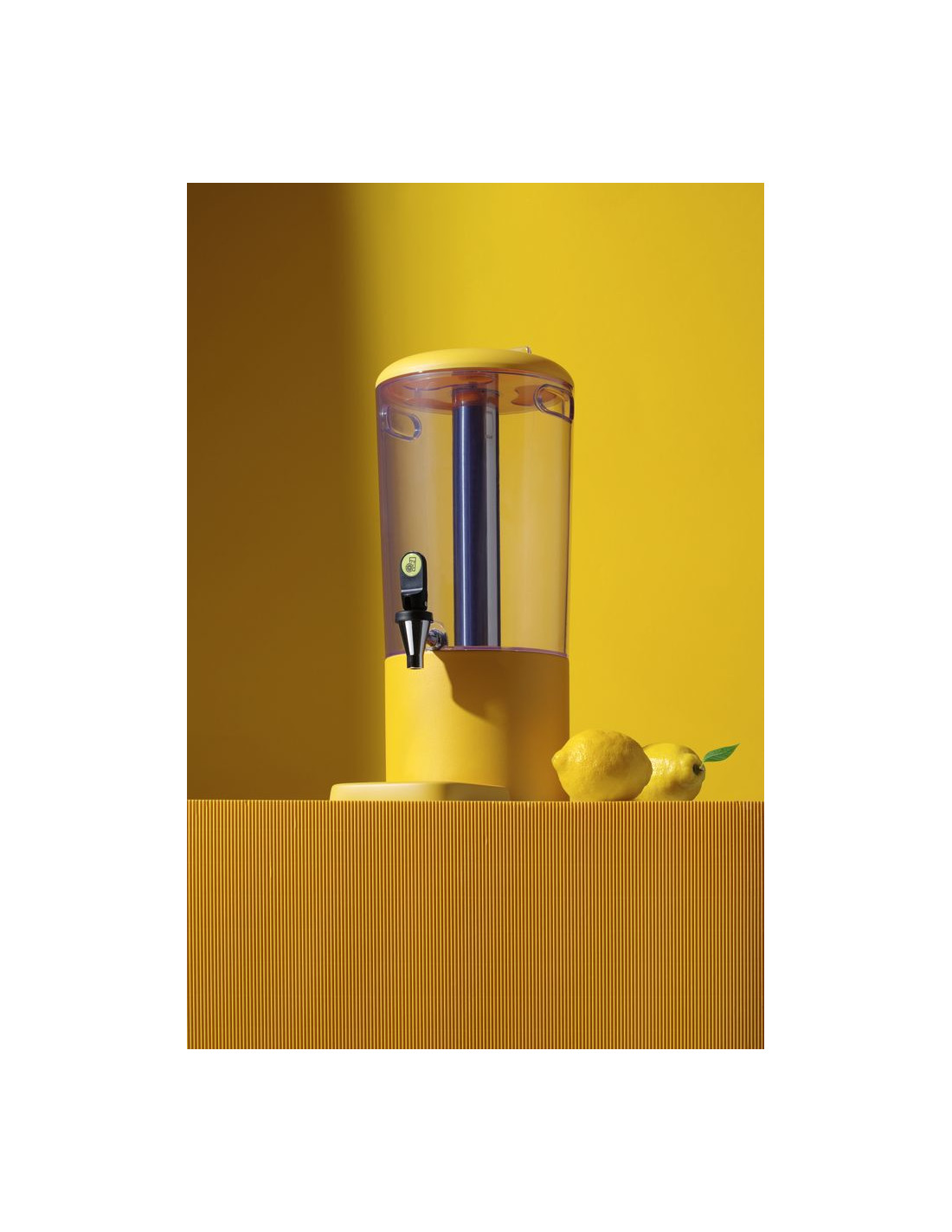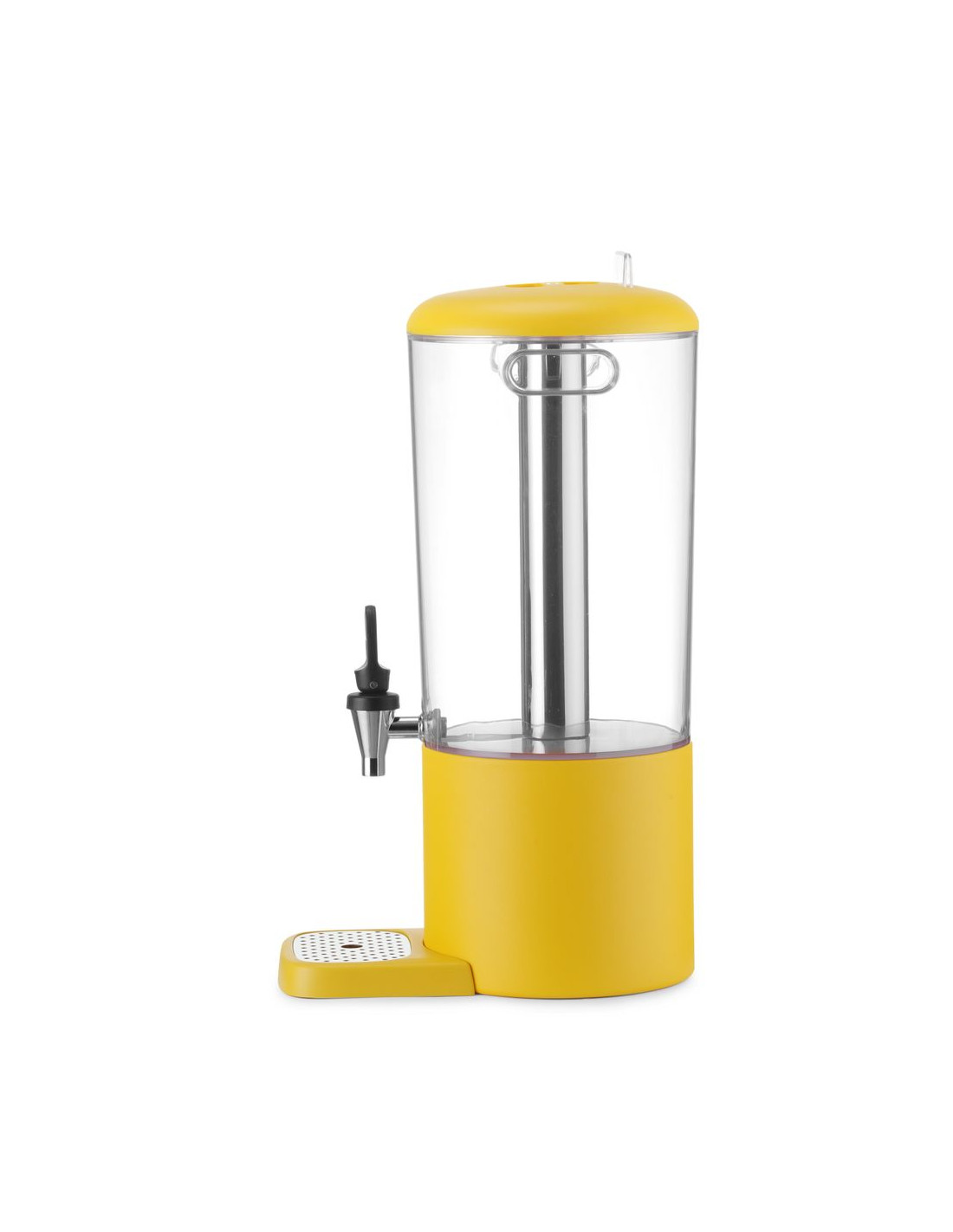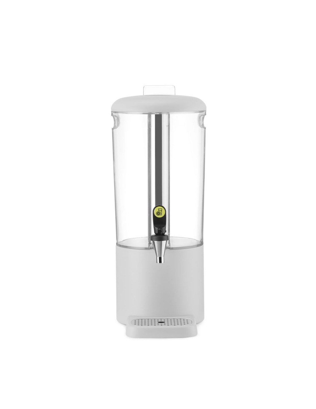 Hölje tillverkat av slitstarkt ABS. Magnetisk droppbricka med färgmatchad hölje, lätt att rengöra, med perforerad insats i rostfritt stål. Avtagbar kylstång i rostfritt stål för is hjälper till att hålla dryckerna kalla. Snabb montering och demontering säkerställer enkelt hygieniskt underhåll. Dryckesbehållare utformad för att minimera rester i botten. Praktiska bärhandtag för enkel transport av dispensern. Färgglad bas tillverkad av polypropen. Etiketthållare för drycksidentifiering. Droppfri kran placerad 130 mm ovanför basen. Enkel dryckesutmatning. Transparent hölje möjliggör enkel övervakning av vätskenivån. Erbjuds i två kapaciteter – 4 och 8 liter. Finns i tre färger som matchar andra delar av UNIQ-kollektionen: svart, vit och gul. Modern design av Robert Bronwasser. Tidlös färgpalett, kompletterar perfekt presentationen av kalla drycker på en buffé. HENDI Juicer är en del av den prisbelönta UNIQ-kollektionen från Buffet Reinvented-serien.