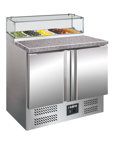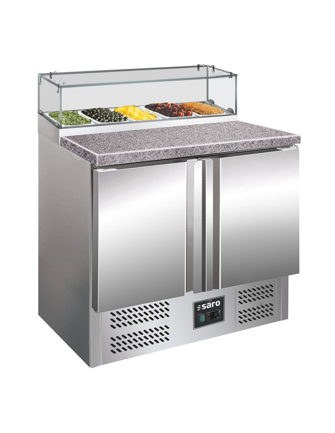 Material: (hölje och insida) rostfritt stål; (bänkskiva) granit; glasskiva