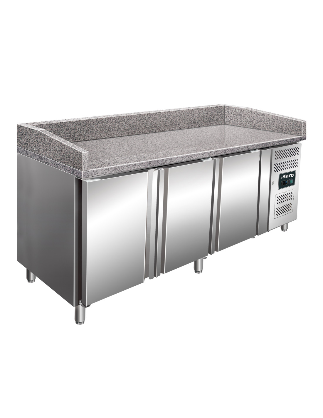 Material: (hölje och insida) rostfritt stål; (bänkskiva med uppstående kant) granit
