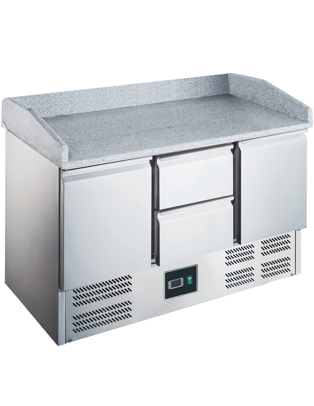 Material: (hölje och insida) rostfritt stål; (bänkskiva med uppåtstående) granit