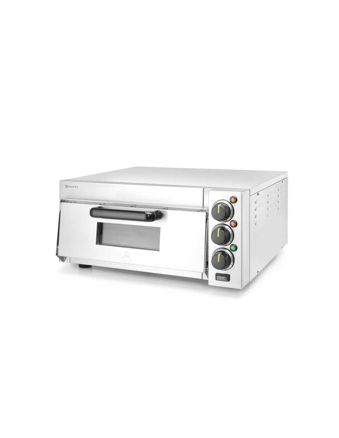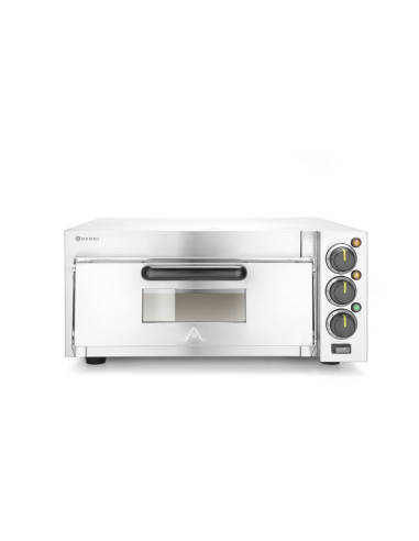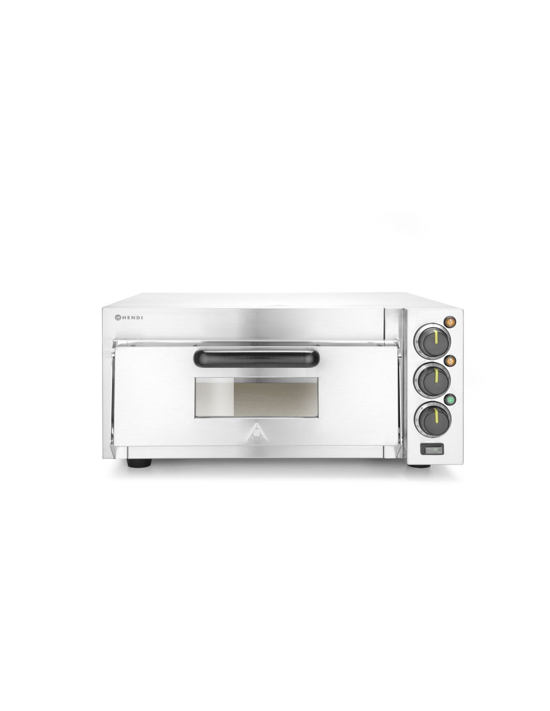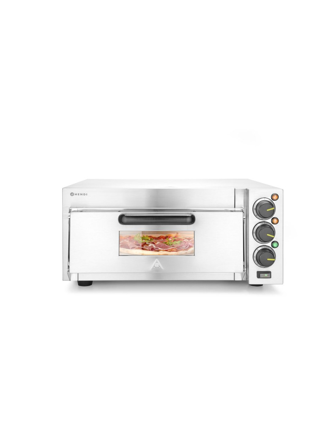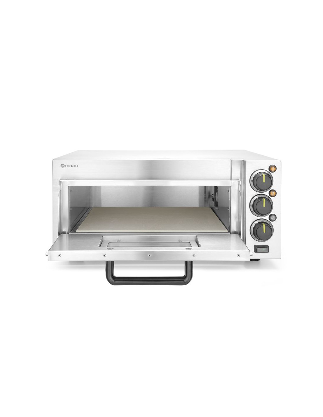 Kompakt pizzaugn med golv i eldfast tegel. Utrustad med värmeelement i toppen och botten av ugnskammaren.