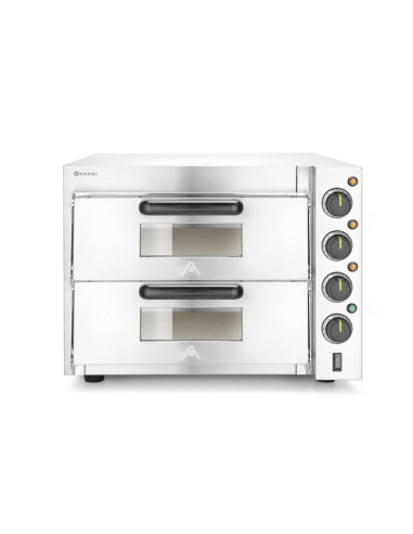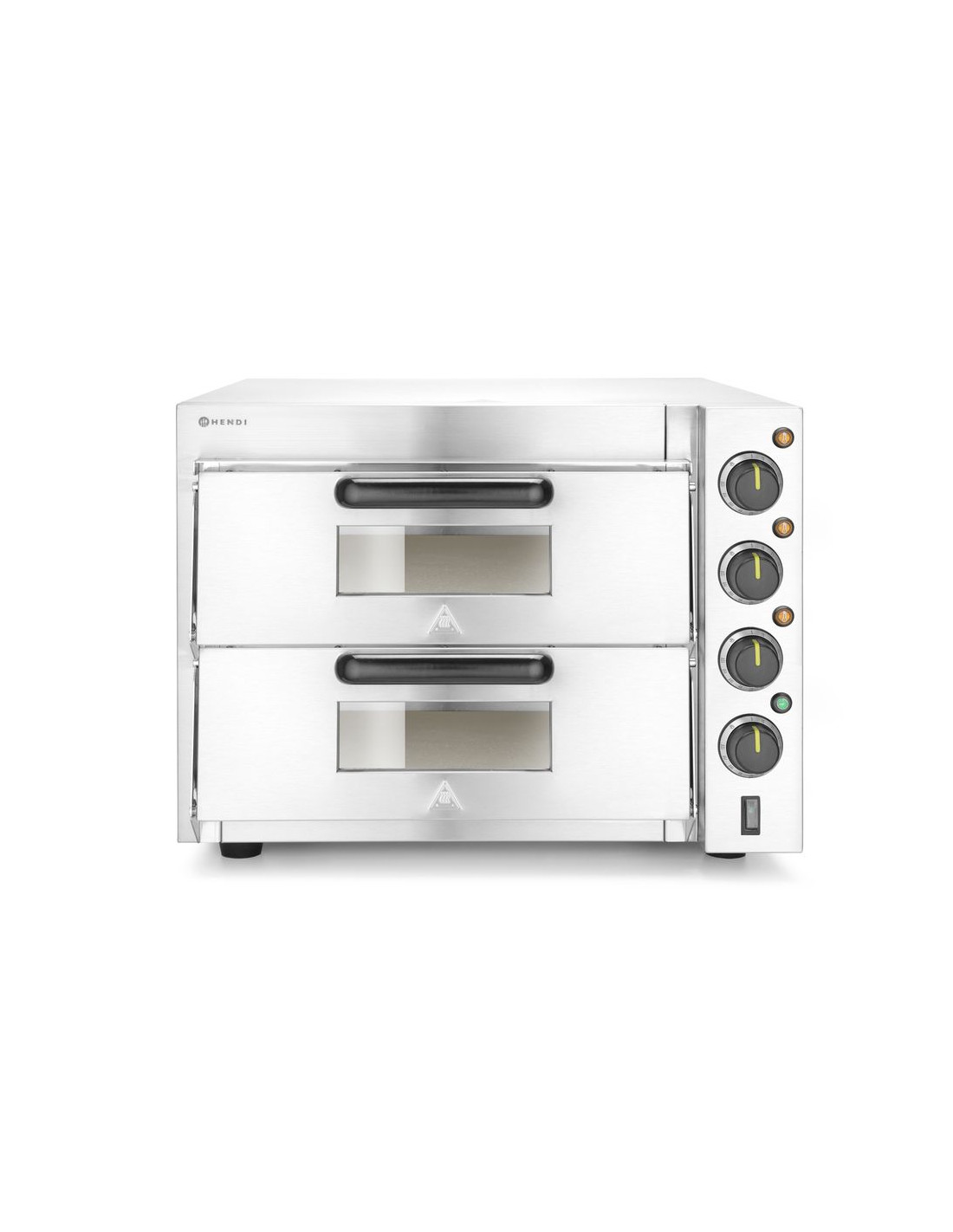 Kompakt pizzaugn med golv i eldfast tegel. Dubbelplan så att du kan laga flera pizzor eller andra rätter samtidigt.