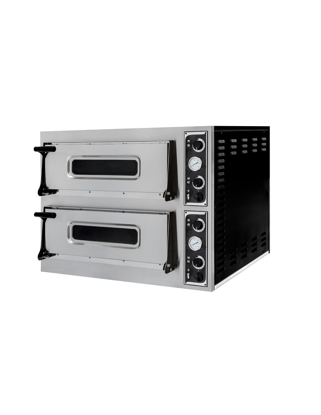 Stålhölje med rostfri front, isolerat med stenull. Analog kontrollpanel med individuella kontroller för varje värmeelement, två element per ugnskammare. Varje ugnskammare är försedd med eldfasta tegelstenar, en termometer och en lampa. Modeller med 2 kammare har helt separata kontrollpaneler för varje ugnskammare. Temperaturområde: 50 °C upp till 500 °C.
