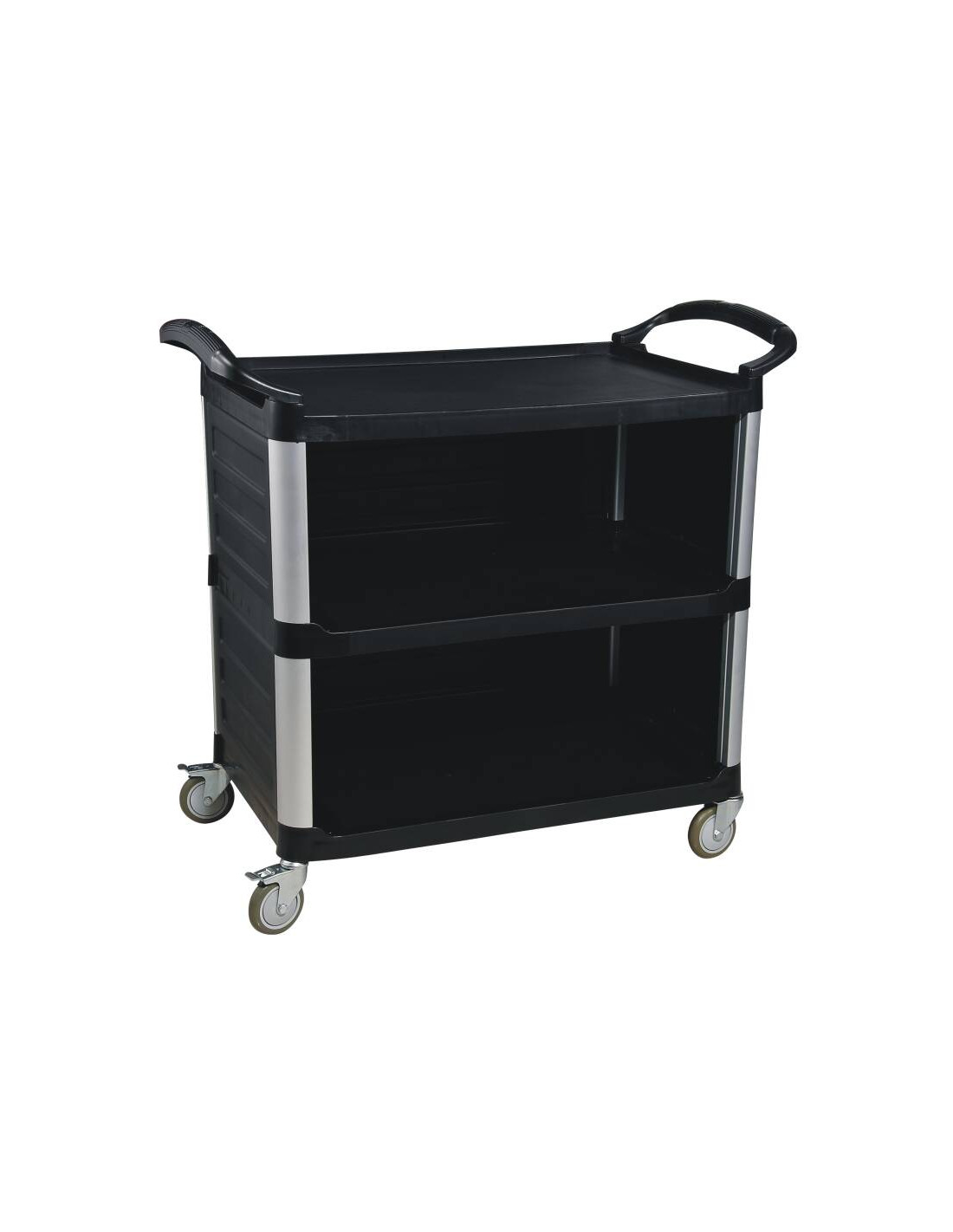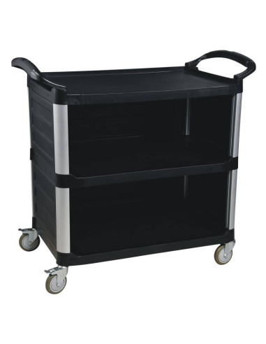 Multiduty service cart, half open, black PP