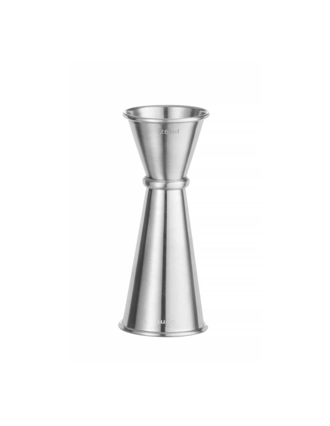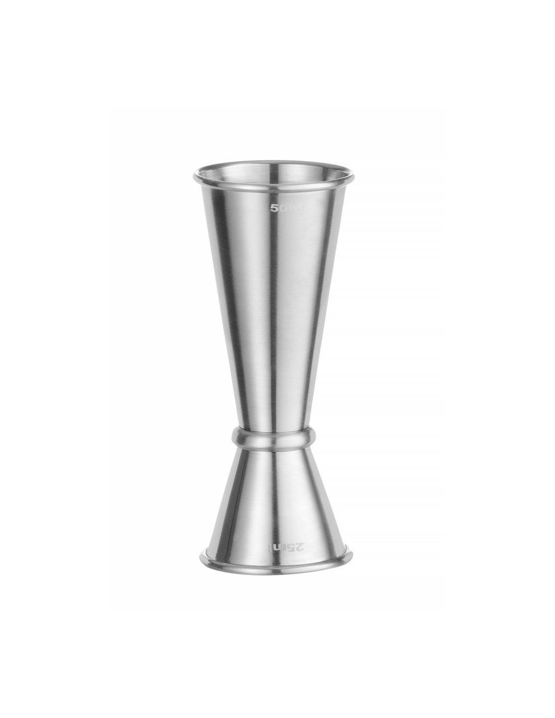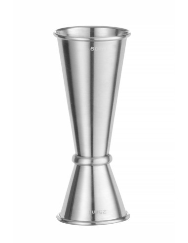 Tillverkad av rostfritt stål med extra ring för vikt och stabilitet. Dubbel, 25 ml och 50 ml.