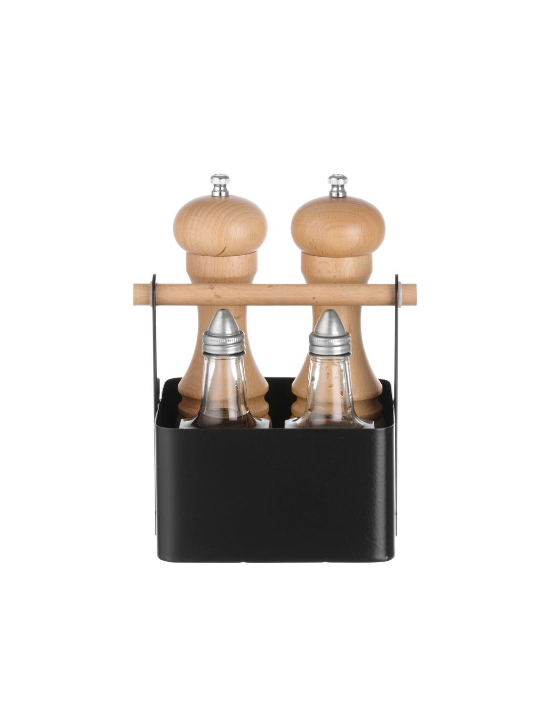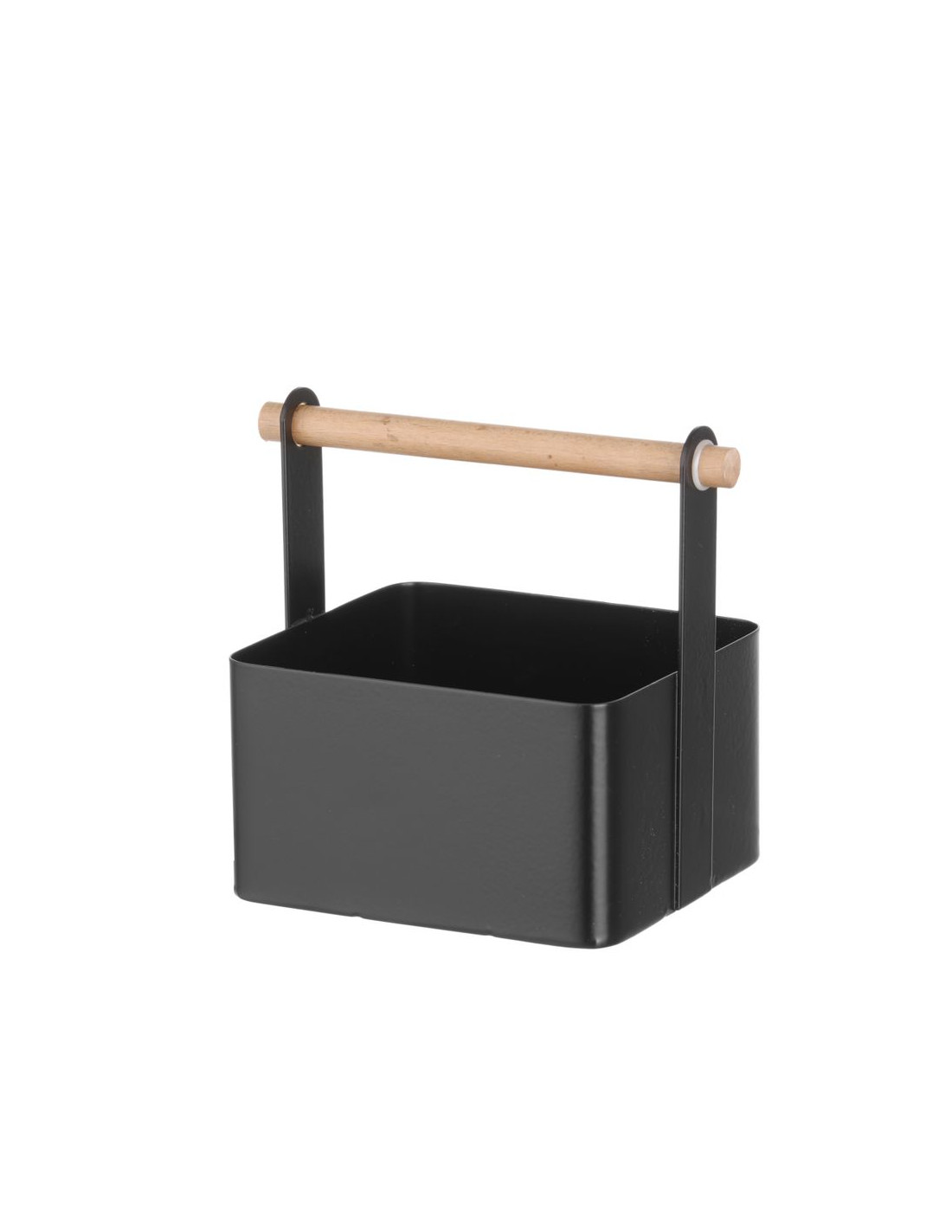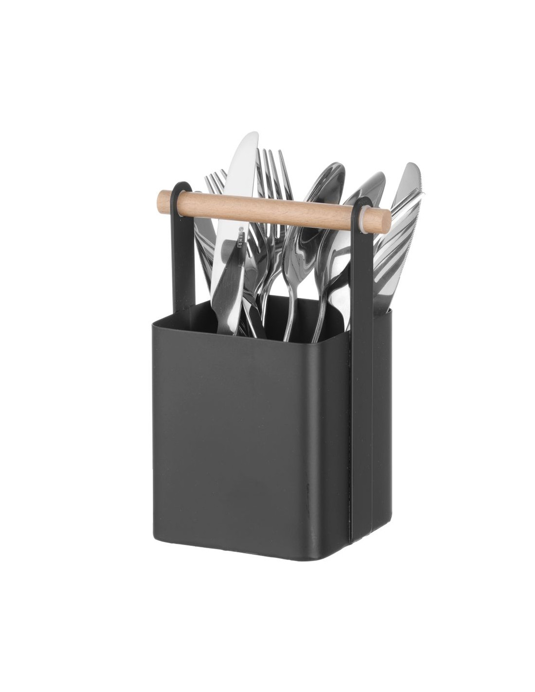Försedd med trähandtag. Ytbehandling med matt svart pulverlack. Tillbehör som visas på bilden ingår ej.