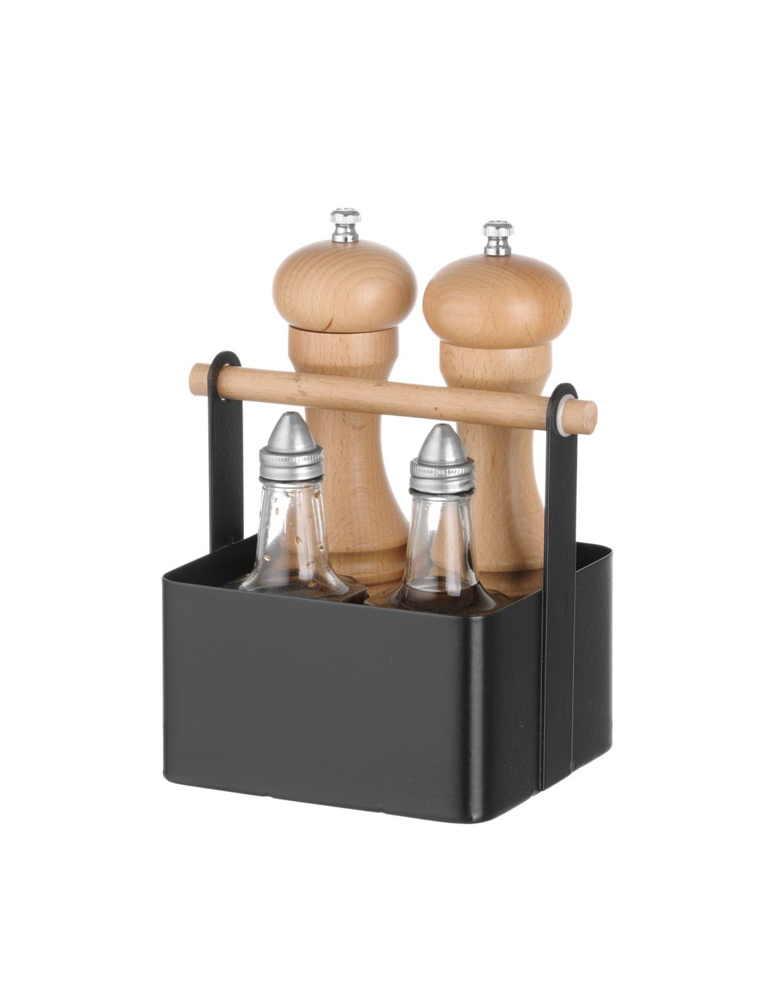 Försedd med trähandtag. Ytbehandling med matt svart pulverlack. Tillbehör som visas på bilden ingår ej.