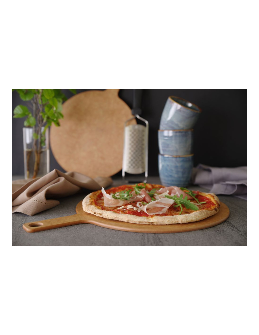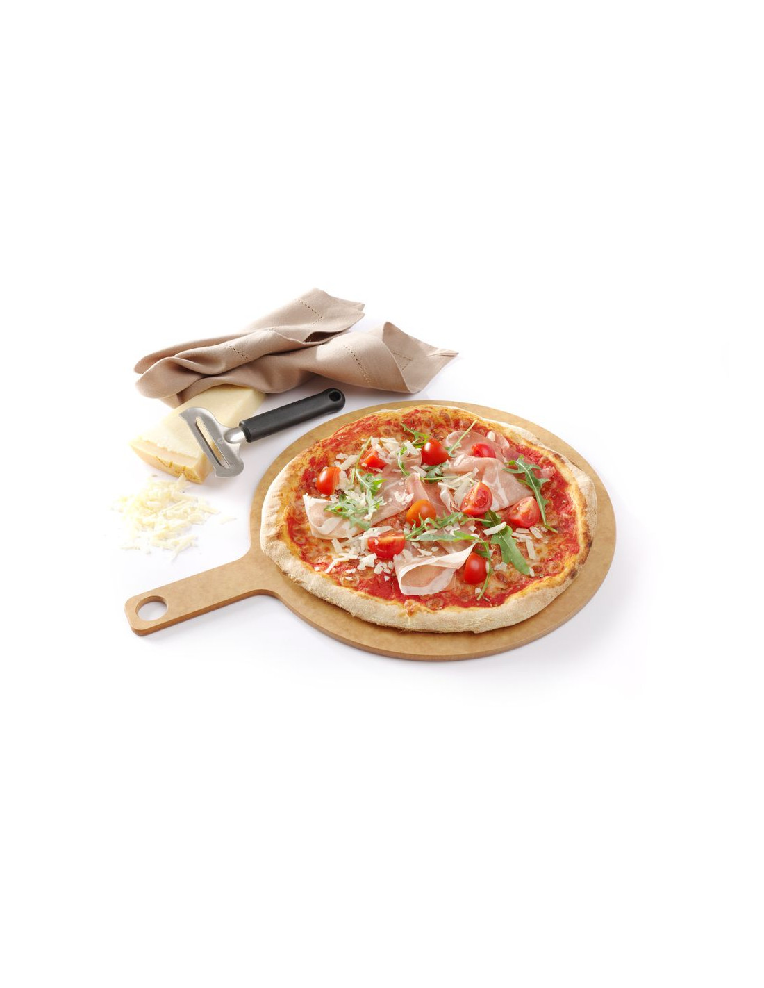 HENDI pizzabräda med handtag erbjuder den perfekta bakgrunden för den världsberömda italienska specialiteten. Det komprimerade träet behöver inte oljas och färgen mörknar med tiden, vilket ger den ett rustikt utseende. Den praktiska öglan i handtaget gör den perfekt att förvara brädan hängande.