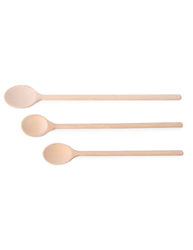 För professionell användning inom gastronomi Mångsidig användning Elegant, klassisk form Tillverkad av bokträ Set om 3 Sked 1 längd: 400 mm Sked 2 längd: 350 mm Sked 3 längd: 300 mm OBS: Ej diskmaskinssäker