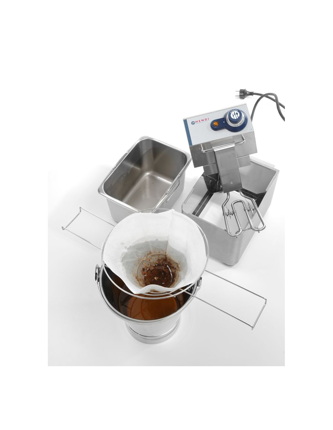 Oumbärlig inom professionell gastronomi – förlänger effektivt oljans livslängd tack vare effektiv filtrering. Tillverkad av syntetiskt siden. Extremt hållbar, med värmebeständighet upp till 200 °C. Fångar effektivt upp föroreningar, inklusive matpartiklar som kan leda till fettantändning. Som ett resultat optimerar de användningen av friteringsutrustning. Med livsmedelskontaktdeklaration.
