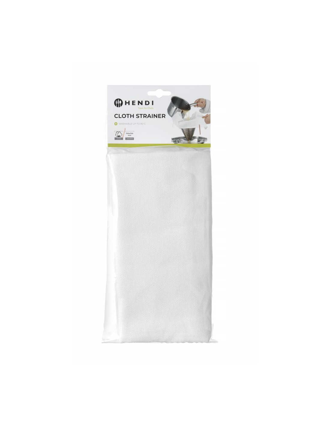100 % bomull. Tvättbar upp till 95 °C. Perfekt för att klargöra buljong.