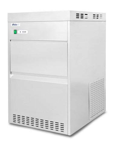 Producerar isflingor. Hölje helt i rostfritt stål. Isbehållarens kapacitet: upp till 20 kg. Inlopps- och utloppsslangar samt isskopa ingår. Klimatklass: ST. Köldmedium: R290. Utrustad med blå LED-lampa.