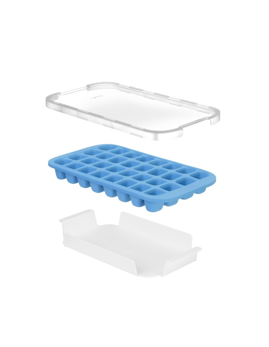 Tillverkad av silikon. Lock av polypropen. Bottenbricka av ABS. För att göra 32 små isbitar (≤ 3,2 x 3,2 x 3,4 cm).