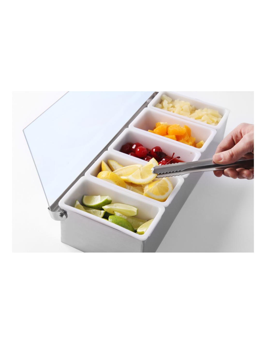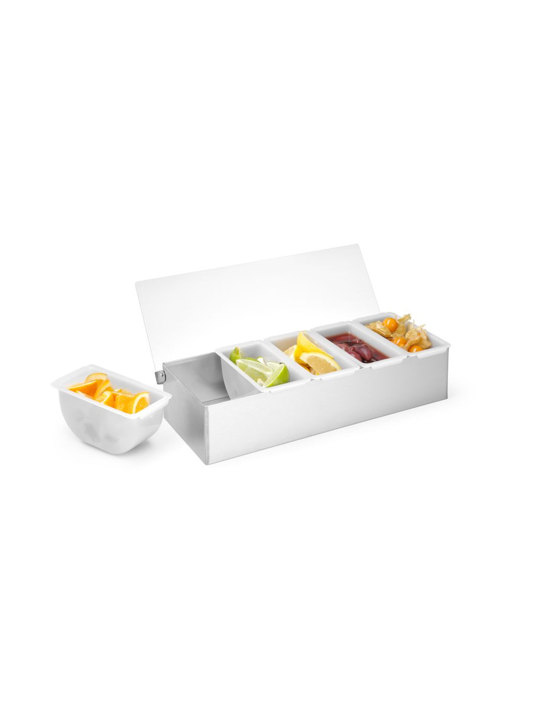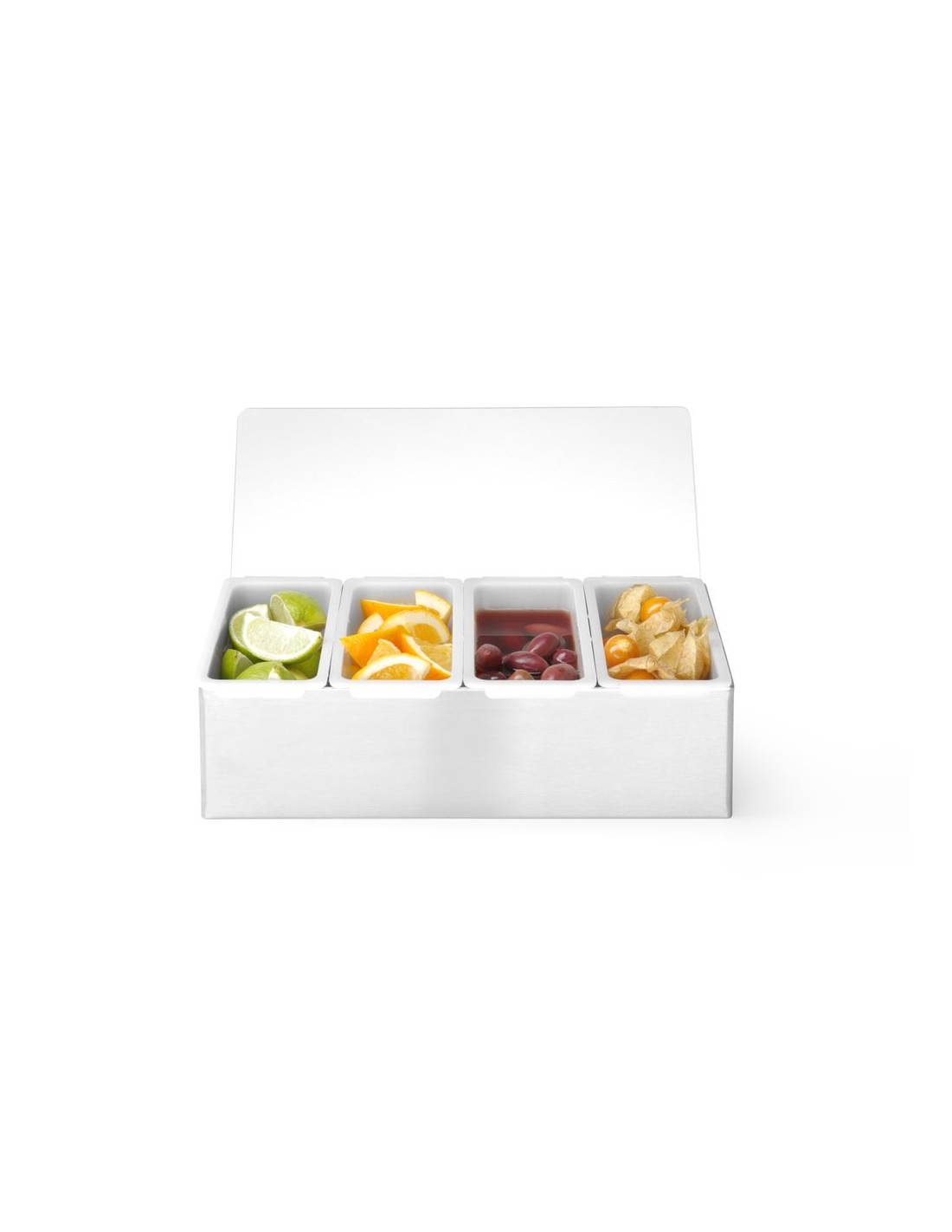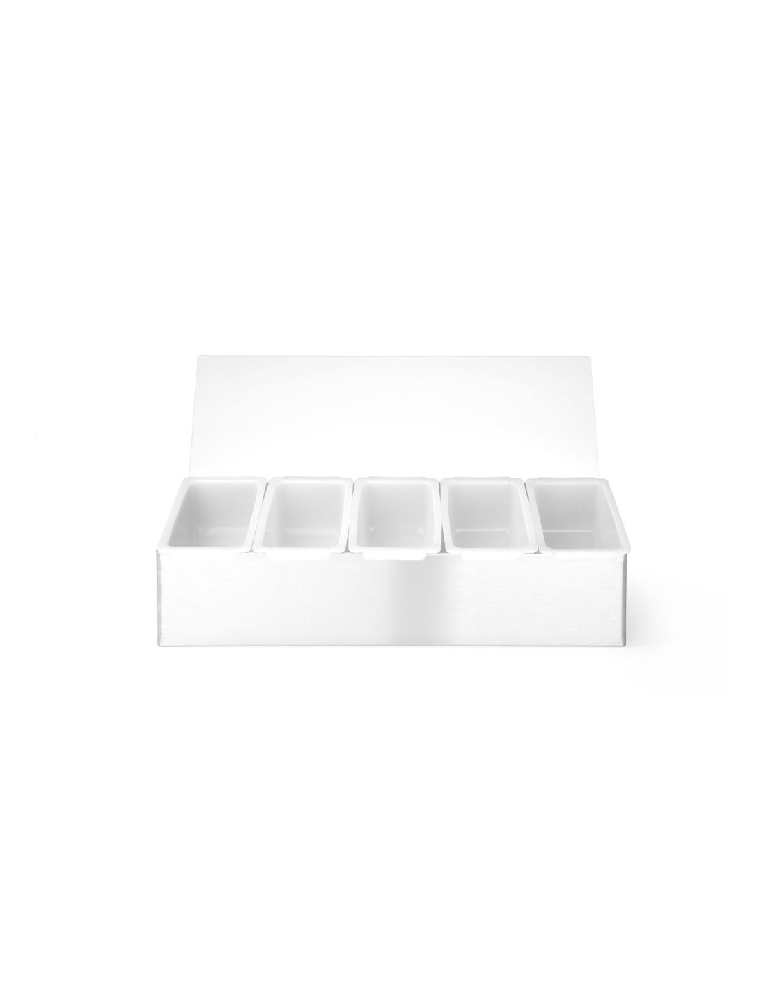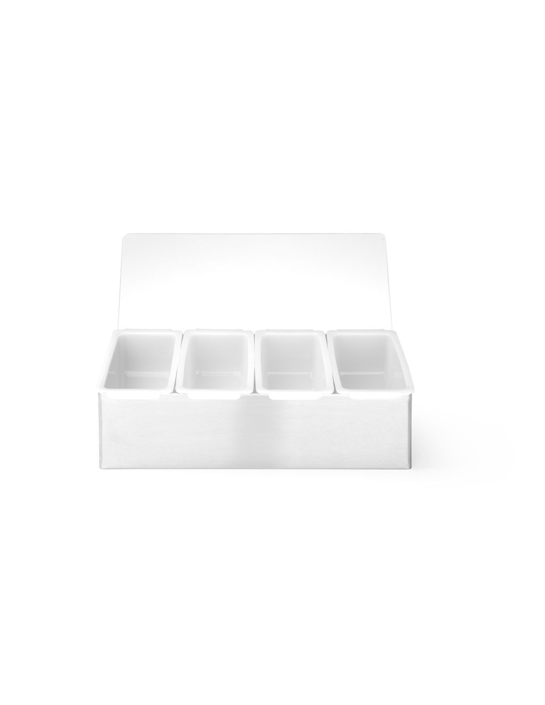 Tillverkad av högkvalitativa material. Rostfritt stål med transparent polypropenlock för att skydda livsmedel från kontaminering eller insekter. Förvaringsbehållare i polypropen för separat förvaring av tillsatser eller kryddor. Behållarna kan enkelt lyftas ut ur hållaren. Behållarna tål maskindisk.