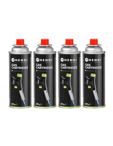 Lämplig att använda i kombination med HENDI Chefs-brännare 198247. Ej lämplig för påfyllning av gaständare etc. Förpackad per 4 behållare. Beställningsenhet: låda med 7 set med 4 behållare.